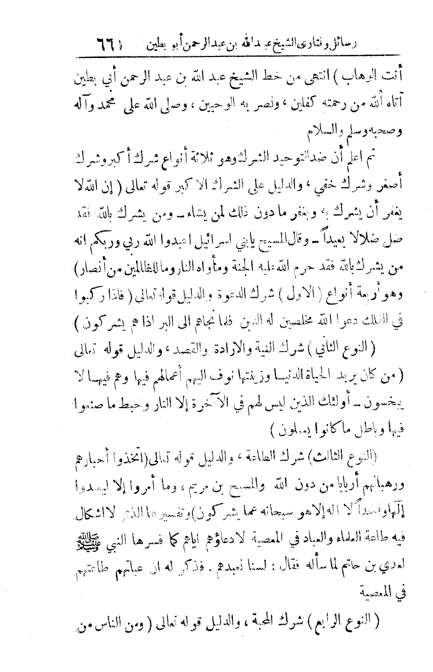 أَنْتَ الْوَهَّابُ}، [آل عمران: 8]. انتهى من خطّ الشّيخ عبد الله بن عبد الرّحمن أبي بطين. آتاه الله من رحمته كفلين، ونصر به الوحيين.