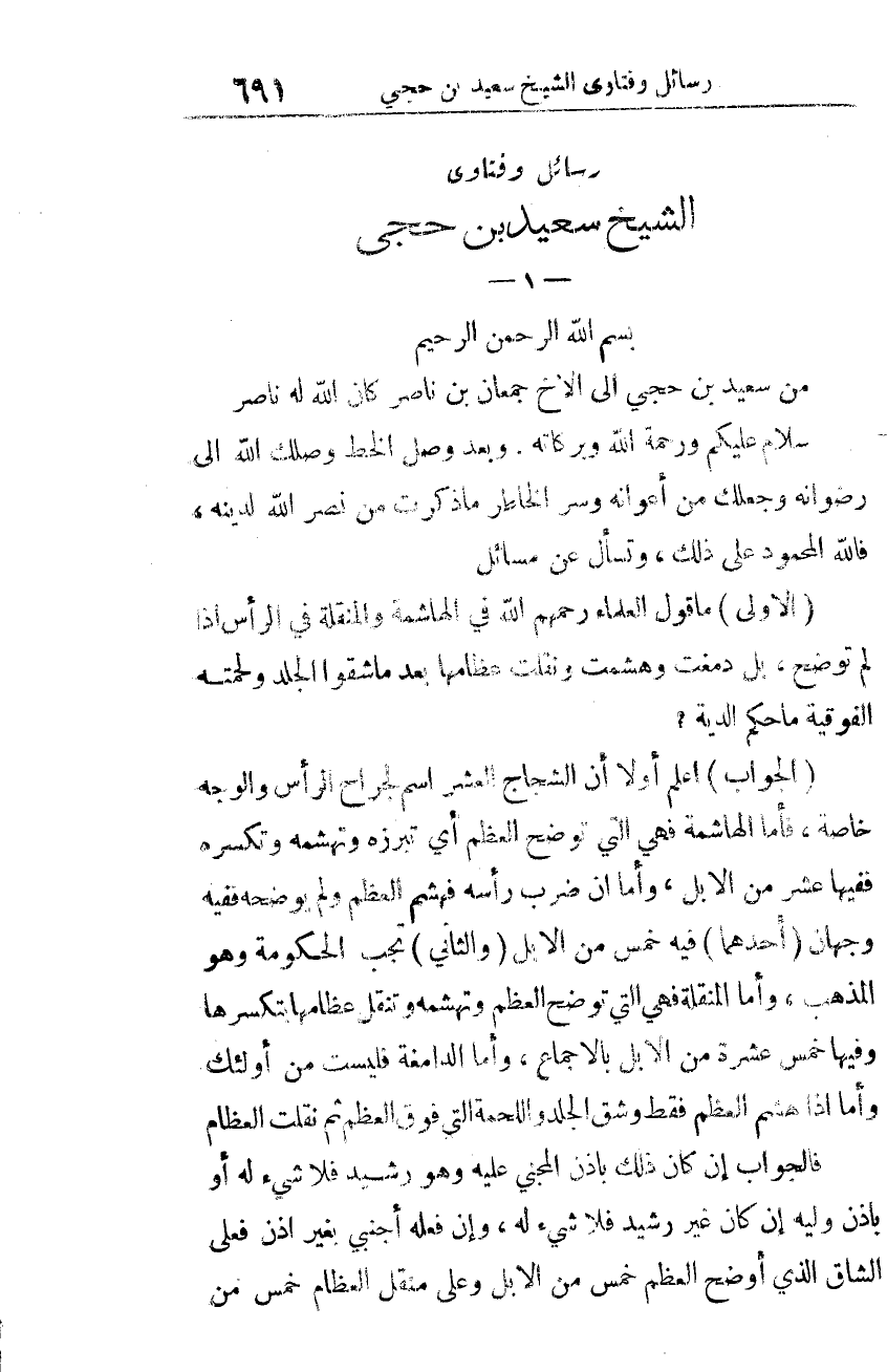 رسائل وفتاوى للشيخ سعيد بن حجي