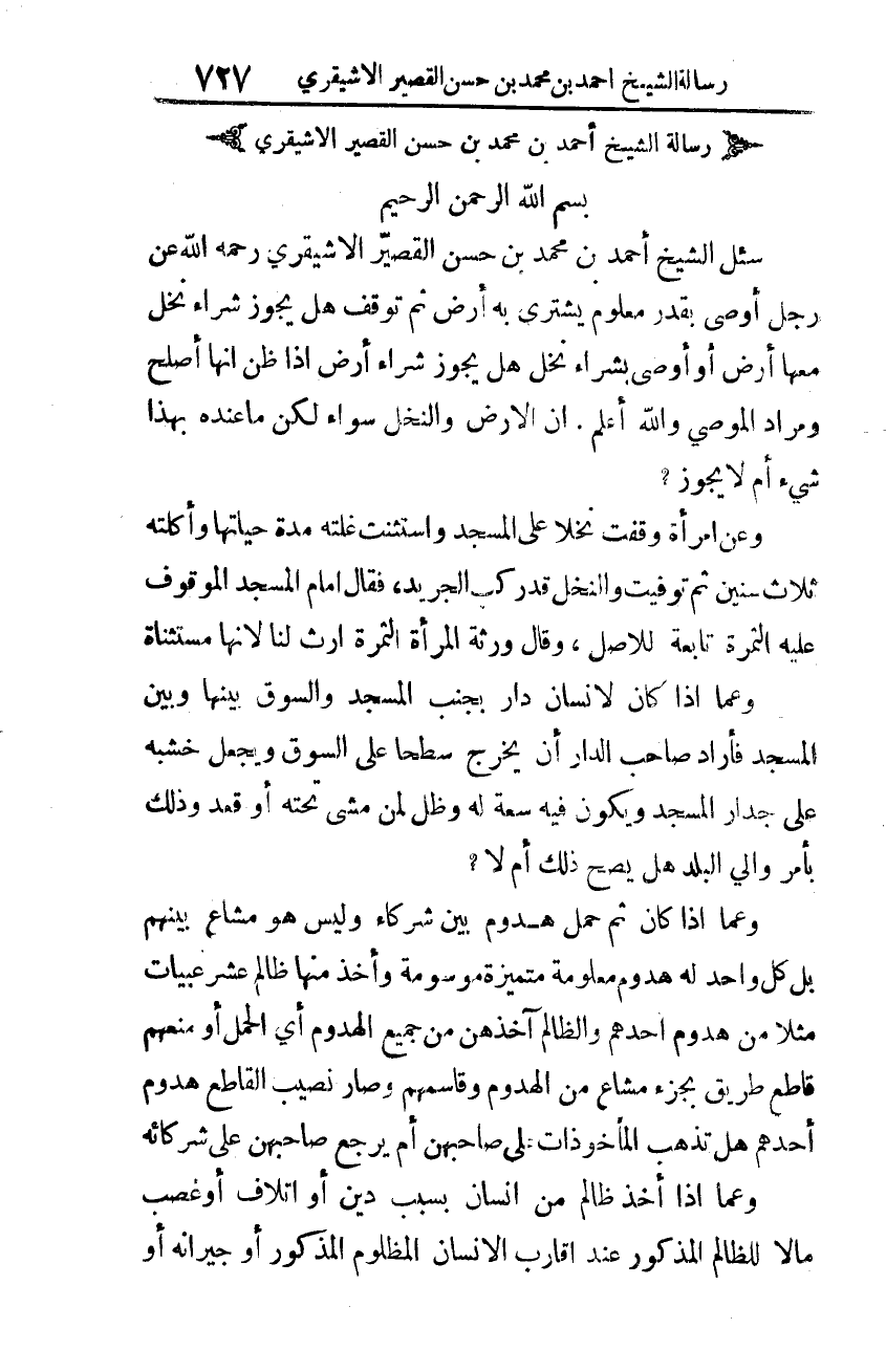 رسالة للشيخ أحمد بن محمد بن حسن القصير الأشيقري