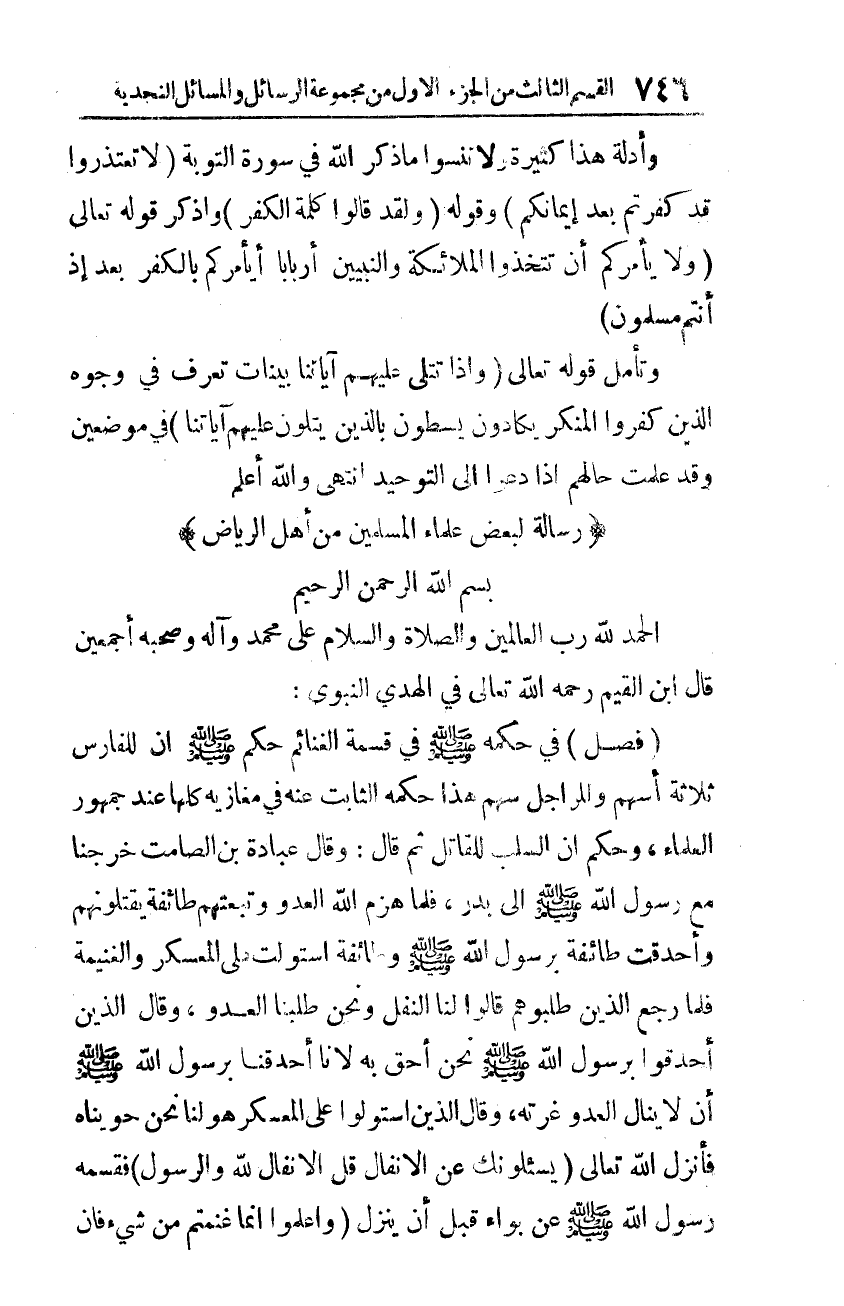 {رسالة لبعض علماء المسلمين من أهل الرّياض}