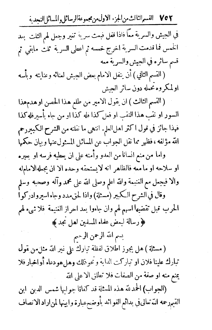 كتاب مجموعة الرسائل والمسائل النجدية (اسم الجزء: 1)
