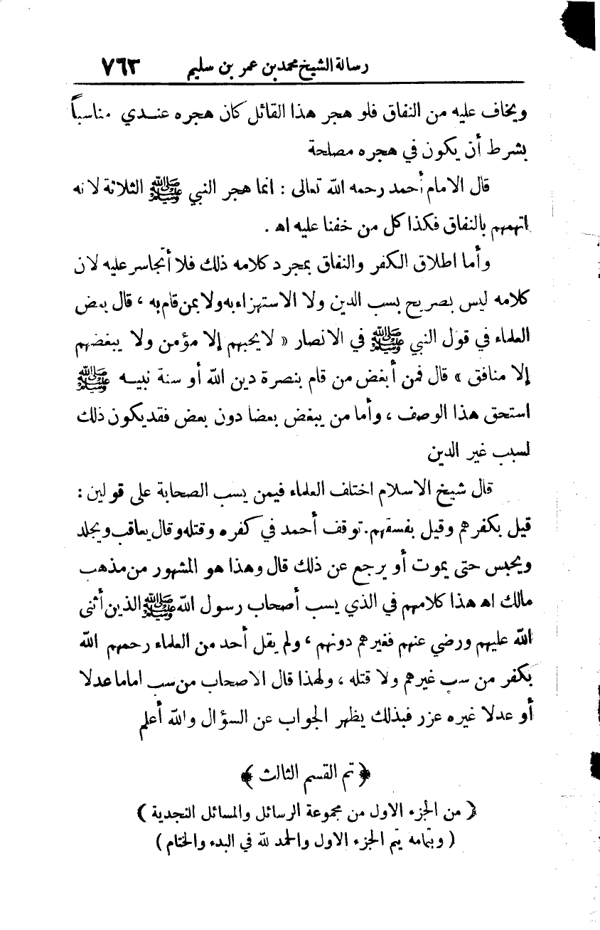 (من الجزء الأوّل من مجموعة الرّسائل والمسائل النّجديّة)