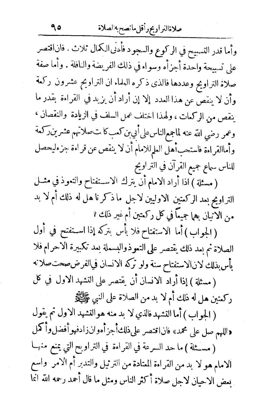 (مسألة): ما حد السرعة في القراءة في التراويح التي يمنع منها الإمام، هو لا بد من القراءة المعتادة من الترتيل والتدبر، أم الأمر واسع بعض الأحيان لأجل صلاة أكثر الناس، ومثل ما قال أحمد -رحمه الله-: إنما