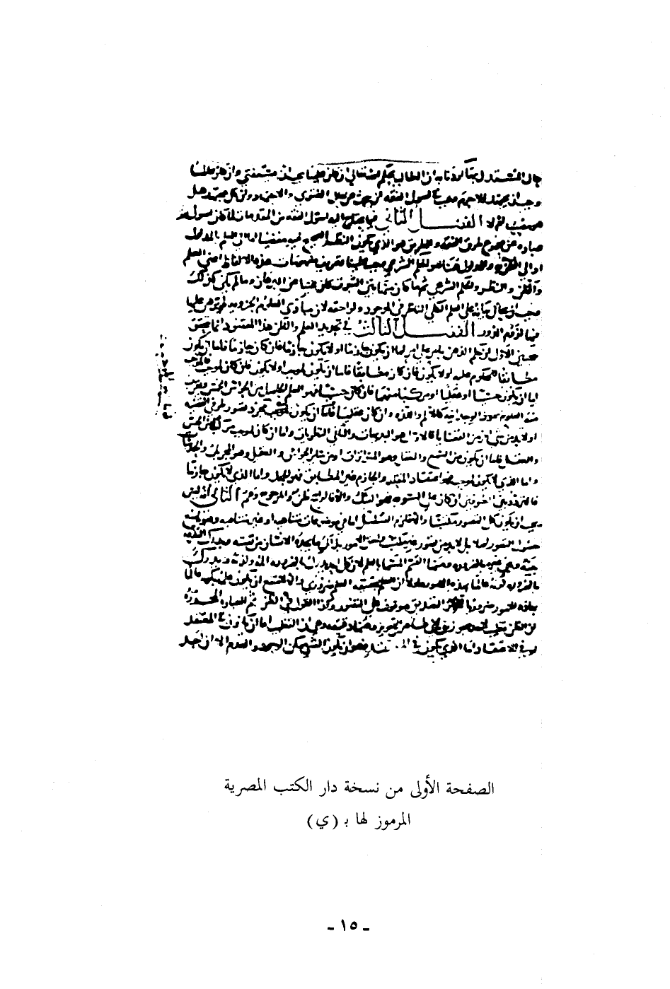 الصفحة الاولى من نسخة دار الكتب المصرية المرموز لها ب (ي)