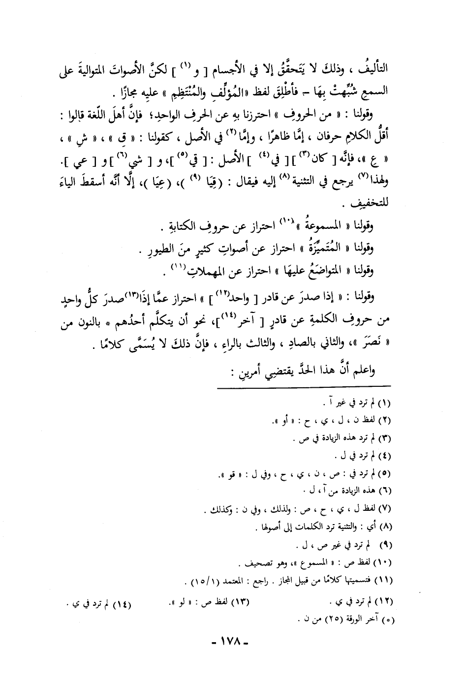 التأليف وذلك لا يتحقق إلا في الأجسام ولكن الأصوات المتوالية على السمع شبهت بها فأطلق لفظ المولف والمنتظم عليه مجازا وقولنا من الحروف احترزنا به عن الحرف الواحد فإن أهل اللغة قالوا أقل الكلام حرفان إما ظاهرا وإما في الأصل كقولنا ق ش ع فإنه كان في الأصل قي وشي وعي ولهذا يرجع في التثنية إليه فيقال قيا عيا إلا أنه أسقط الياء للتخفيف وقولنا المسموعة احتراز عن حروف الكتابة وقولنا المتميزة احتراز عن أصوات كثير من الطيور وقولنا المتواضع عليها احتراز عن المهملات وقولنا إذا صدر عن قادر واحد احتراز عما إذا صدر كل واحد من حروف الكلمة عن قادر آخر نحو أن يتكلم أحدهم بالنون من نصر والثاني بالصاد والثالث بالراء فإن ذلك لا يسمى كلاما واعلم أن هذا الحد يقتضي أمرين