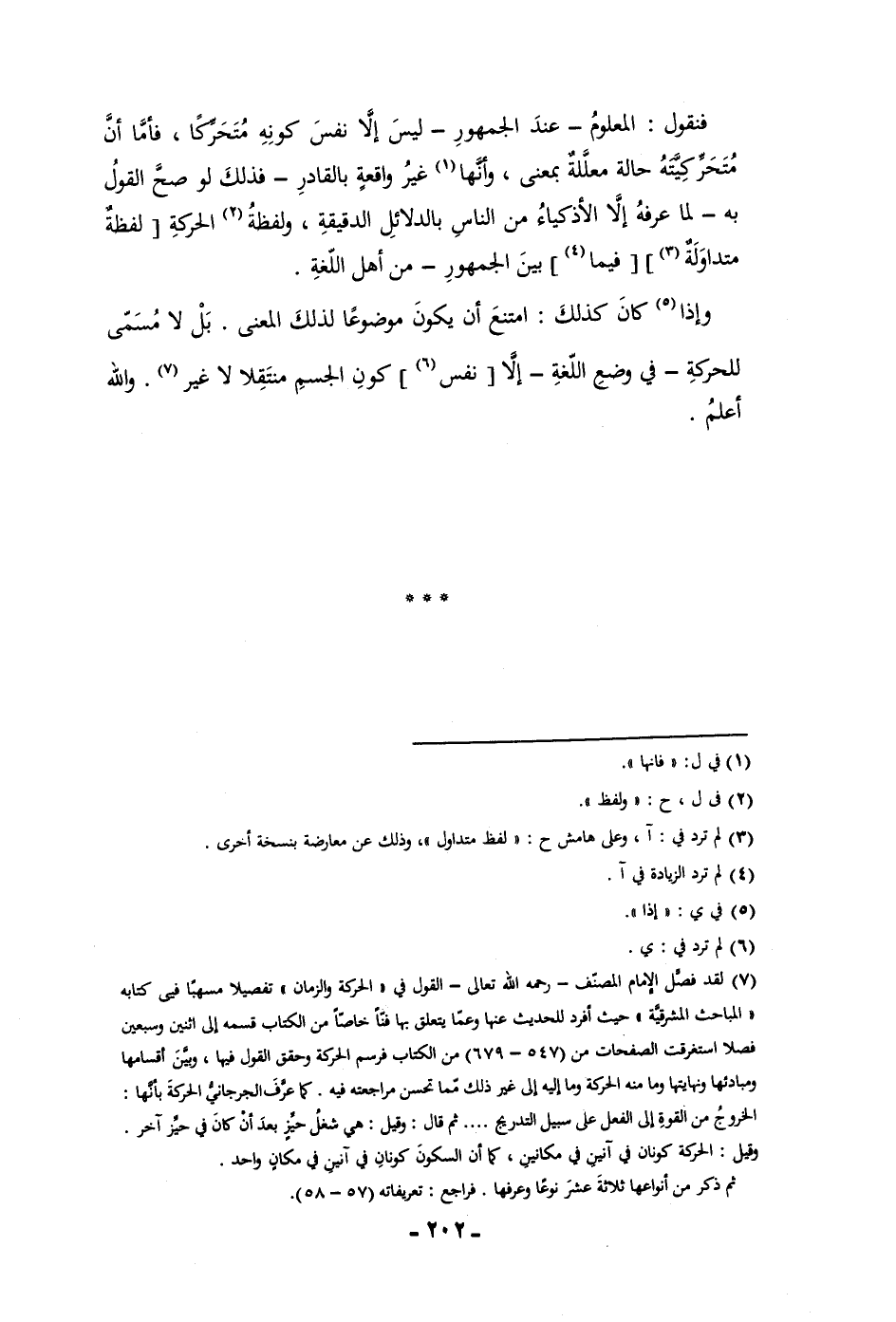 فنقول المعلوم عند الجمهور ليس إلا نفس كونه متحركا فأما أن متحركيته وقد حالة معللة بمعنى وأنها غير واقعة بالقادر فذلك لو صح القول به لما عرفه إلا الأذكياء من الناس بالدلائل الدقيقة ولفظة الحركة لفظة متداولة فيما بين الجمهور من أهل اللغة وإذا كان كذلك امتنع أن يكون موضوعا لذلك المعنى بل لا مسمى للحركة في وضع اللغة إلا نفس كون الجسم منتقلا لا غير والله أعلم