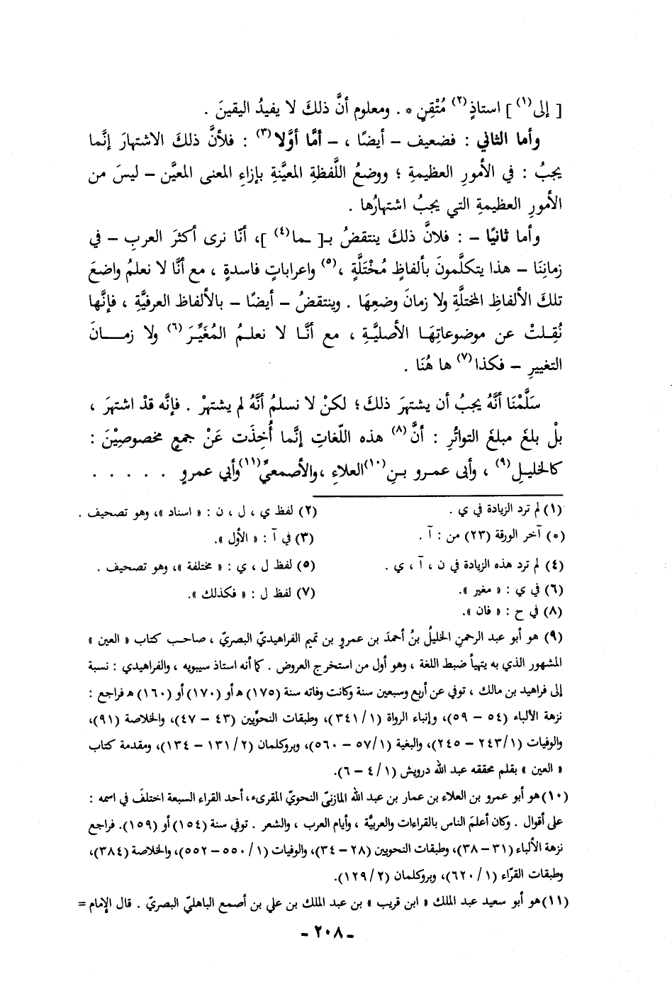 بل بلغ مبلغ التواتر أن هذه اللغات إنما أخذت عن جمع مخصوصين كالخليل وأبي عمرو بن العلاء والاصمعي وأبي عمرو