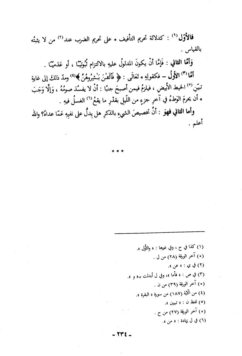 بالقياس وأما الثاني فإما أن يكون المدلول عليه بالالتزام ثبوتيا أو عدميا أما الأول فكقوله تعالى فالآن باشروهن ومد ذلك إلى غاية تبين الخيط الأبيض فيلزم فيمن أصبح جنبا أن لا يفسد صومه وإلا وجب أن يحرم الوطء في آخر جزء من الليل بقدر ما يقع الغسل فيه وأما الثاني فهو أن تخصيص الشئ بالذكر هل يدل على نفيه عما عداه والله أعلم