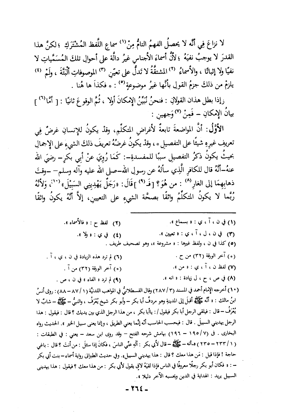بيان الامكان فمن وجهين الأول أن المواضعة تابعة لأغراض المتكلم وقد يكون للانسان غرض في تعريف غيره شيئا على التفصيل وقد يكون غرضه تعريف ذلك الشئ على الاجمال بحيث يكون ذكر التفصيل سببا للمفسدة كما روي عن أبي بكر رضي الله عنه أنه قال للكافر الذي سأله عن رسول الله صلى الله عليه وسلم وقت ذهابهما إلى الغار من هو فقال رجل يهديني السبيل ولأنه ربما لا يكون المتكلم واثقا بصحة الشئ على التعيين إلا أنه يكون واثقا