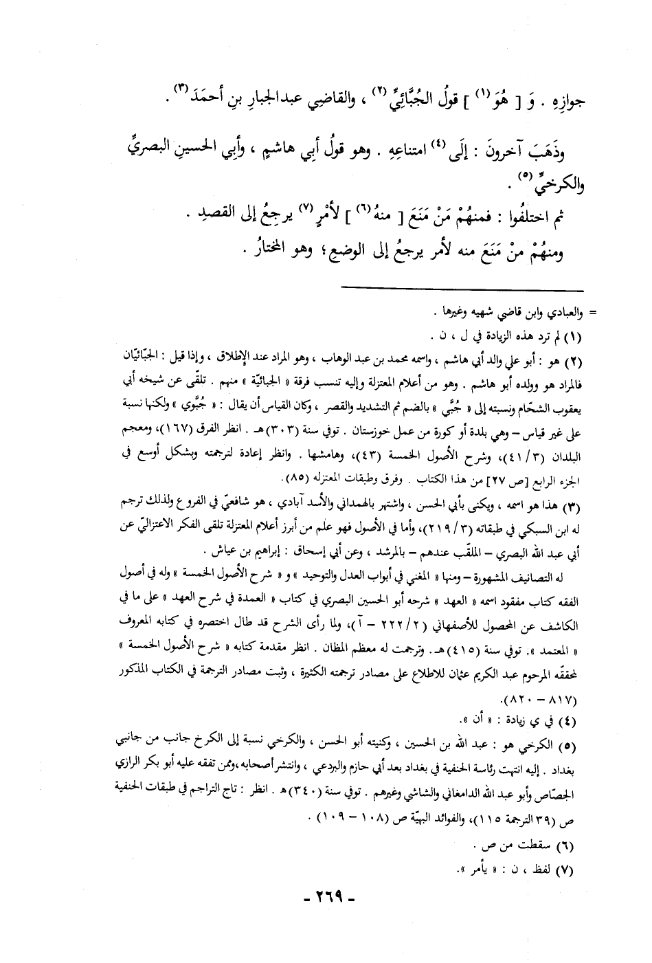 جوازه وهو قول الجبائي والقاضي عبد الجبار بن أحمد وذهب آخرون إلى امتناعه وهو قول أبي هاشم وأبي الحسين البصري والكرخي ثم اختلفوا فمنهم من منع منه لأمر يرجع إلى القصد ومنهم من منع منه لأمر يرجع إلى الوضع وهو المختار