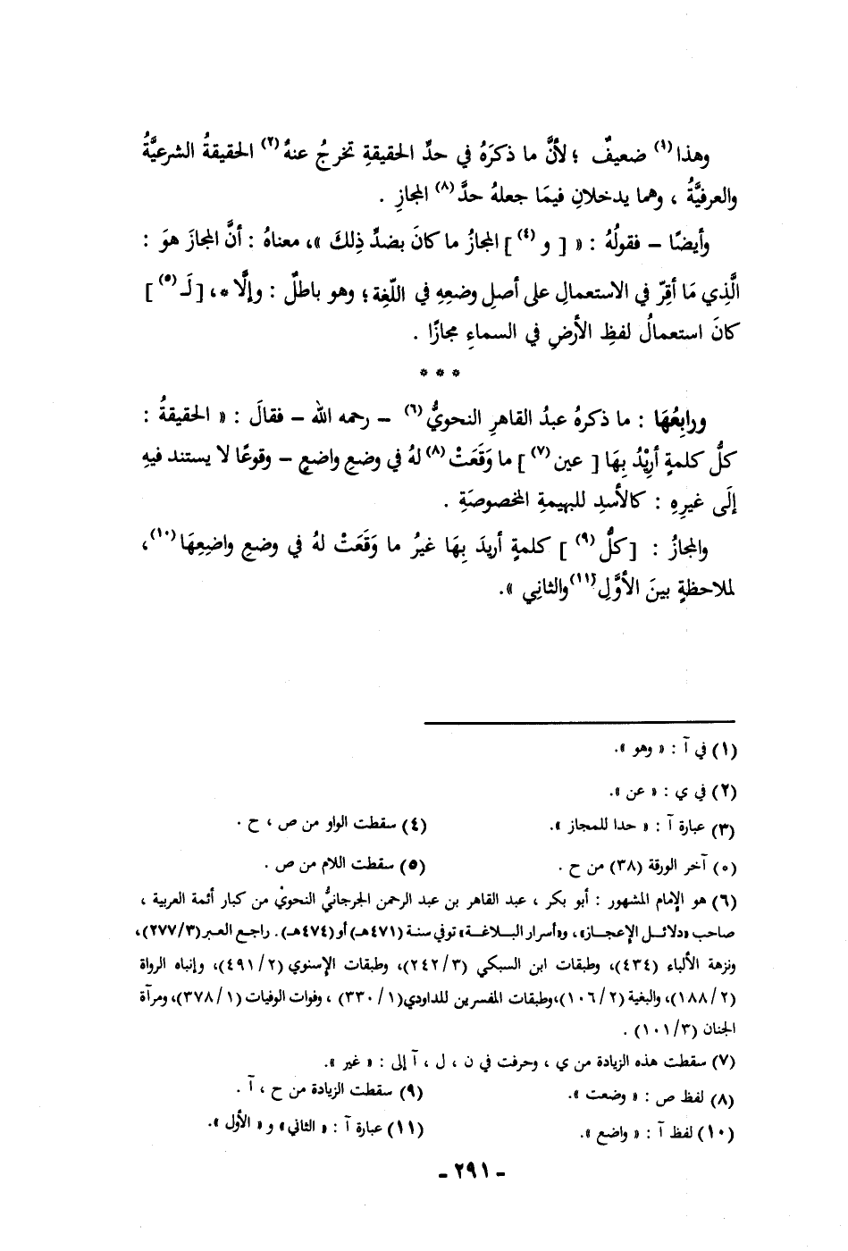 وهذا ضعيف لأن ما ذكره في حد الحقيقة تخرج عنه الحقيقة الشرعية والعرفية وهما يدخلان فيما جعله حد المجاز وأيضا فقوله والمجاز ما كان بضد ذلك معناه أن المجاز هو الذي ما أقر في الاستعمال على أصل وضعه في اللغة وهو باطل وإلا لكان استعمال لفظ الأرض في السماء مجازا ورابعها ما ذكره عبد القاهر النحوي رحمه الله فقال الحقيقة كل كلمة أريد بها عين ما وقعت له في وضع واضع وقوعا لا يستند فيه إلى غيره كالأسد للبهيمة المخصوصة والمجاز كل كلمة أريد بها غير ما وقعت له في وضع واضعها لملاحظة بين الأول والثاني