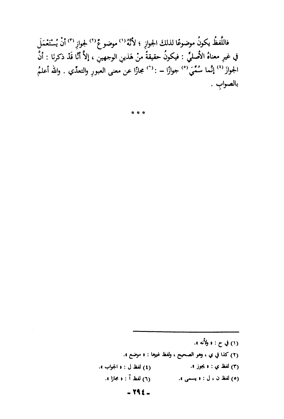 فاللفظ يكون موضوعا لذلك الجواز لأنه موضوع لجواز أن يستعمل في غير معناه الأصلي فيكون حقيقة من هذين الوجهين إلا أنا قد ذكرنا أن الجواز إنما سمي جوازا مجازا عن معنى العبور والتعدي والله أعلم بالصواب
