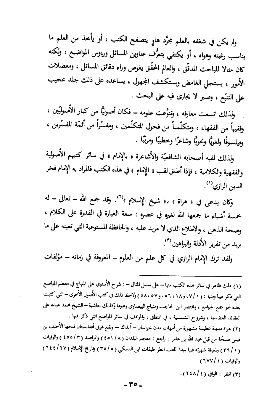 ولذلك اتسعت معارفه، وتنوعت علومه - فكان أصلويا من كبار الاصوليين، وفقيها من الفقهاء، ومتكلما من فحول المتكلمين، ومفسرا من أئمة المفسرين، وفيلسوفا ولغويا ونحويا وشاعرا وخطيبا ومربيا.