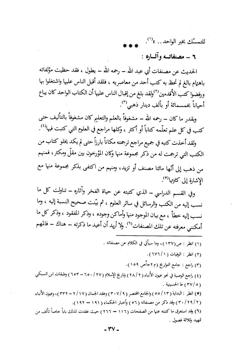 6 - مصنفاته وآثاره: الحديث عن مصنفات أبي عبد الله - رحمه الله - يطول، فقد حظيت مؤلفاته باهتمام بالغ لم تحظ به كتب أحد من معاصريه، فلقد أقبل الناس عليها واشتغلوا بها ورفضوا كتب الاقدمين ولقد بلغ من إقبال الناس عليها أن الكتاب الواحد كان يباع أحيانا بخمسمائة أو بألف دينار ذهبي.