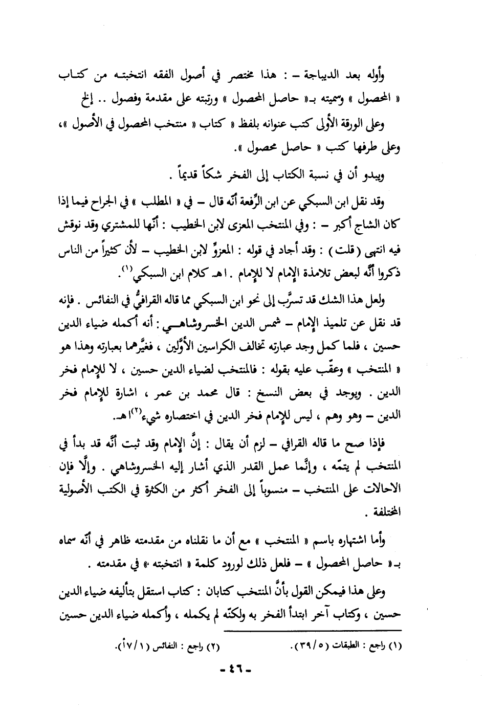 وإلا فإن الاحالات على المنتخب - منسوبا إلى الفخر أكثر من الكثرة في الكتب الاصولية المختلفة.
