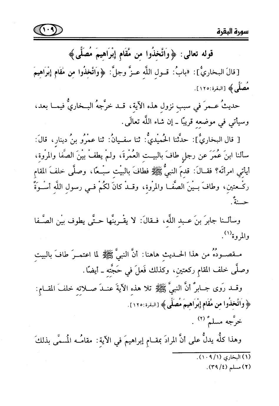 [قالَ البخاريُّ] : "بابُ: قولِ اللَّهِ عزَّ وجلَّ: (وَاتَّخِذُوا مِن مَّقَامِ إبْرَاهِيمَ مُصَلًّى) .