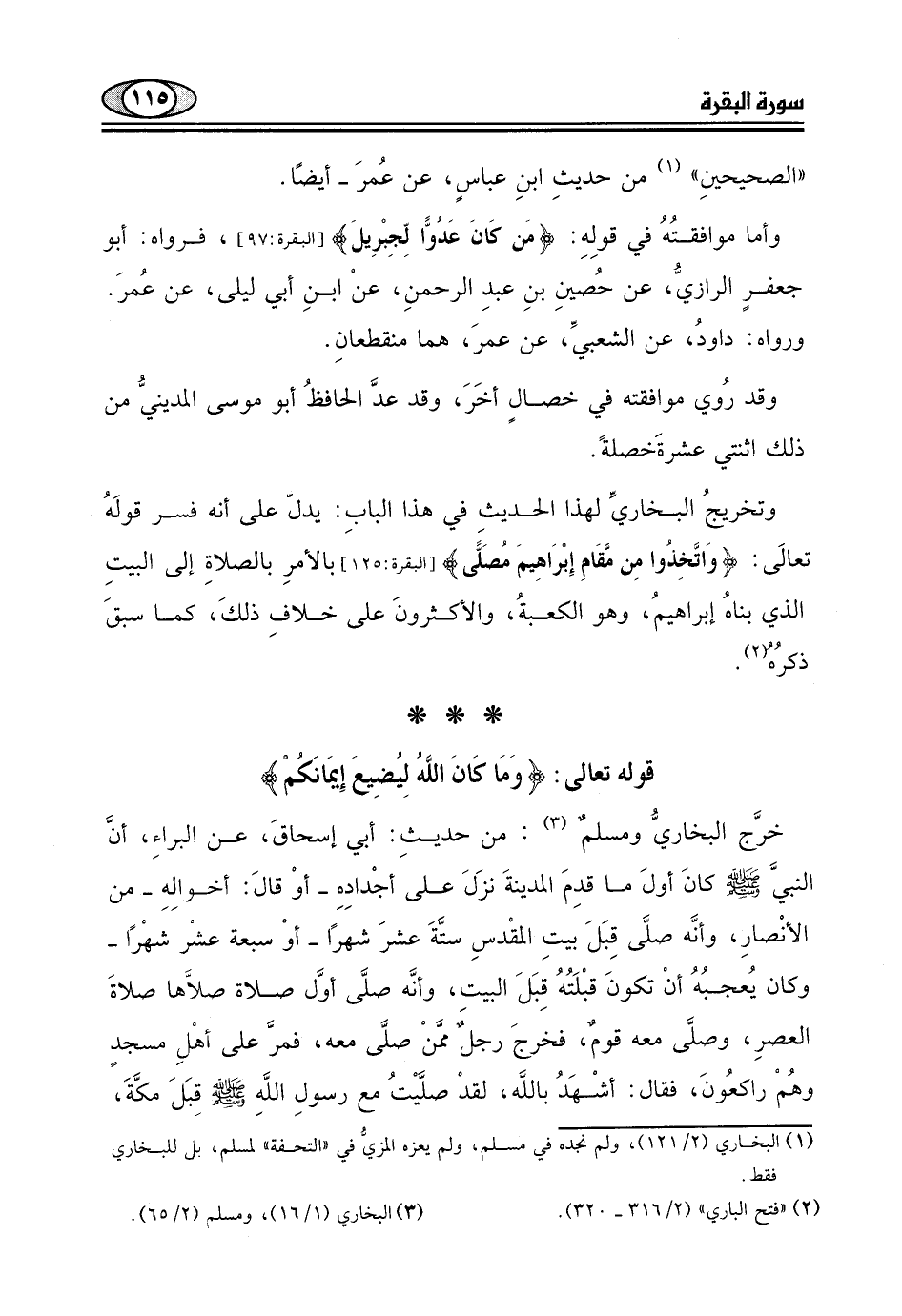 خرَّج البخاريُّ ومسلم: من حديثِ: أبي إسحاقَ، عن البراءِ، أنَّ