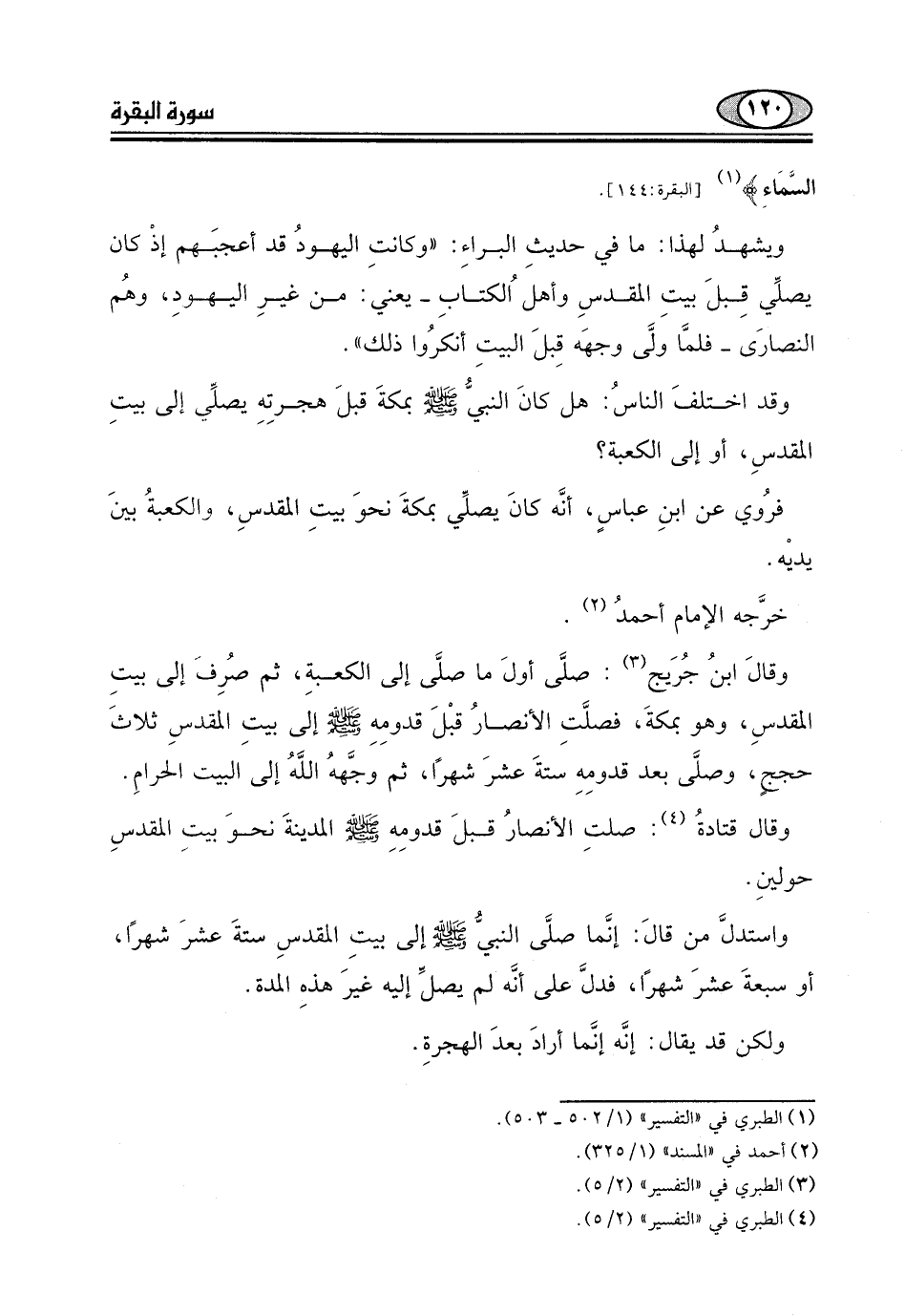 النصارَى - فلمَّا ولَّى وجهَه قِبلَ البيتِ أنكرُوا ذلك ".