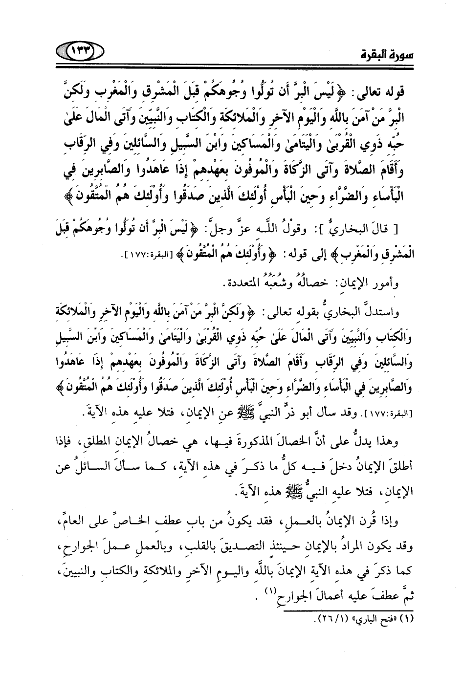 [قالَ البخاريُّ] : وقوْلُ اللَّهِ عزَّ وجلَّ: (لَيْسَ الْبِرَّ أَن تُوَلُّوا وجُوهَكُمْ قِبَلَ