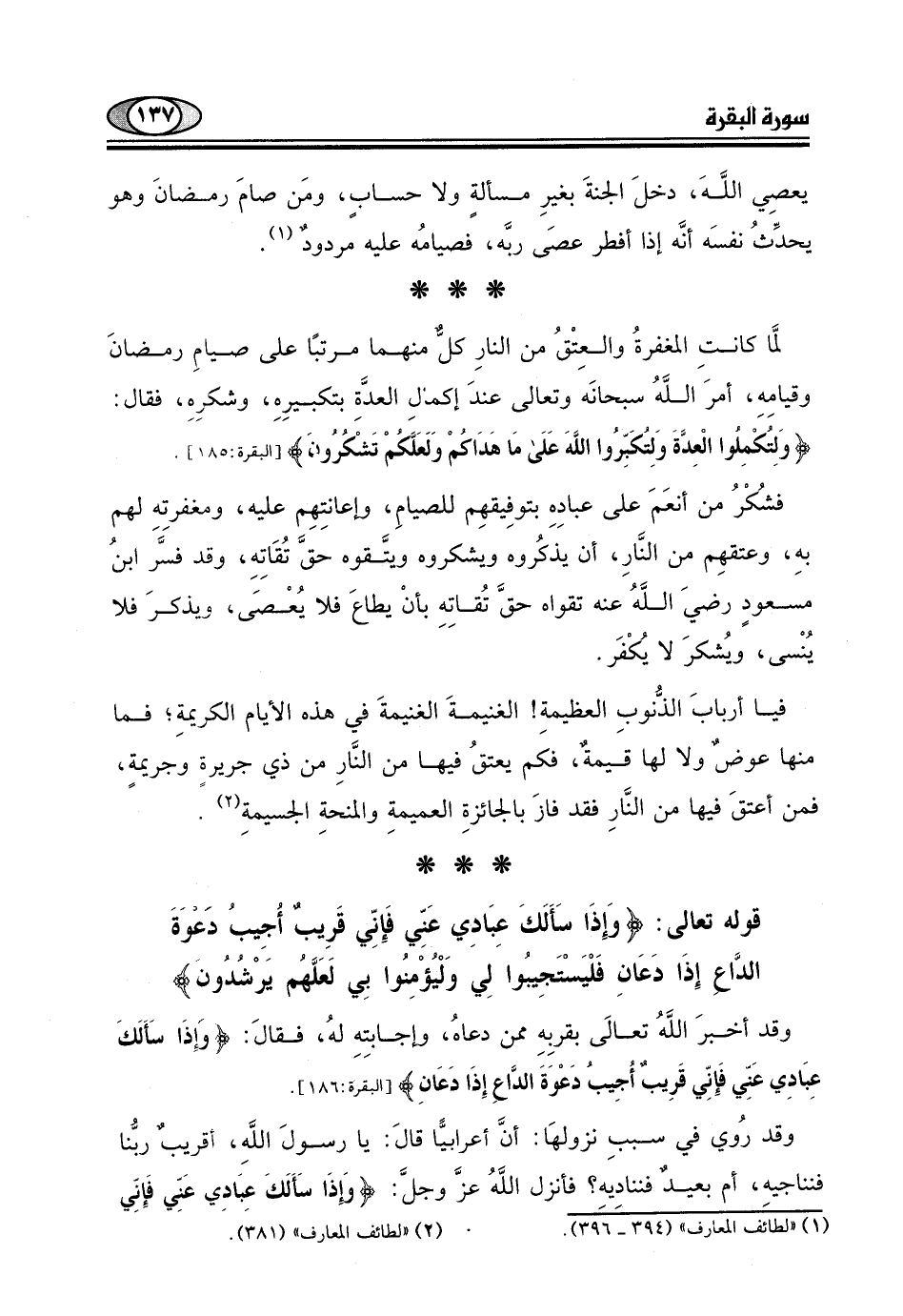 قوله تعالى: (وَإِذَا سَأَلَكَ عِبَادِي عَنِّي فَإِنِّي قَرِيبٌ أُجِيبُ دَعْوَةَ الدَّاعِ إِذَا دَعَانِ فَلْيَسْتَجِيبُوا لِي وَلْيُؤْمِنُوا بِي لَعَلَّهُمْ يَرْشُدُونَ (186)