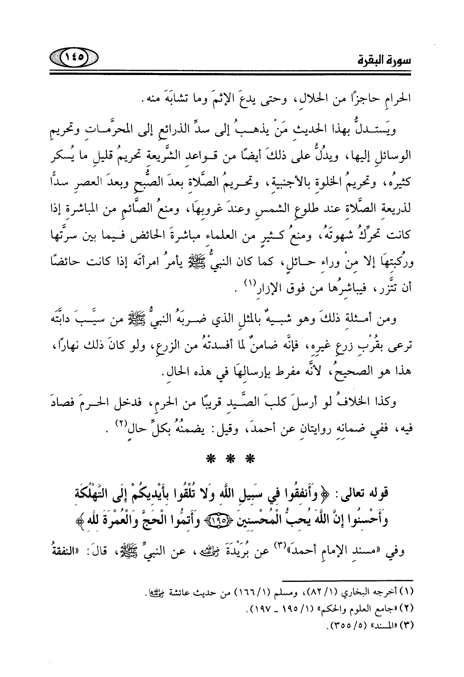 قوله تعالى: (وَأَنْفِقُوا فِي سَبِيلِ اللَّهِ وَلَا تُلْقُوا بِأَيْدِيكُمْ إِلَى التَّهْلُكَةِ وَأَحْسِنُوا إِنَّ اللَّهَ يُحِبُّ الْمُحْسِنِينَ (195) وَأَتِمُّوا الْحَجَّ وَالْعُمْرَةَ لِلَّهِ) .