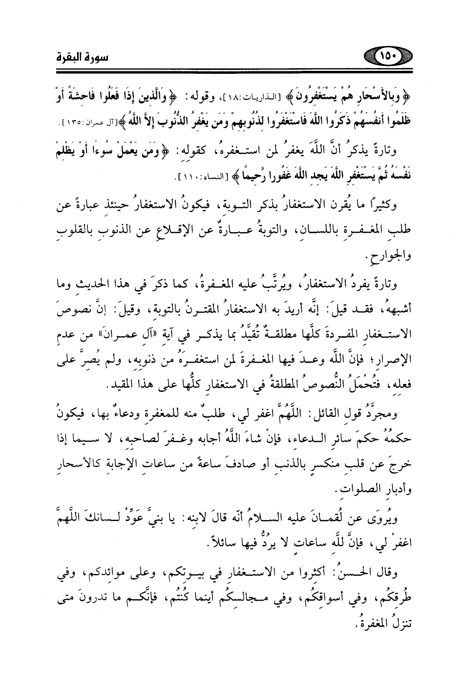 (وَبِالأَسْحَارِ هُمْ يَسْتَغْفِرُونَ) ، وقوله: (وَالَّذِينَ إِذَا فَعَلُوا فَاحِشَةً أَوْ ظَلَمُوا أَنْفُسَهُمْ ذَكَرُوا اللَّهَ فَاسْتَغْفَرُوا لِذُنُوبِهِمْ وَمَنْ يَغْفِرُ الذُّنُوبَ إِلَّا اللَّهُ) .