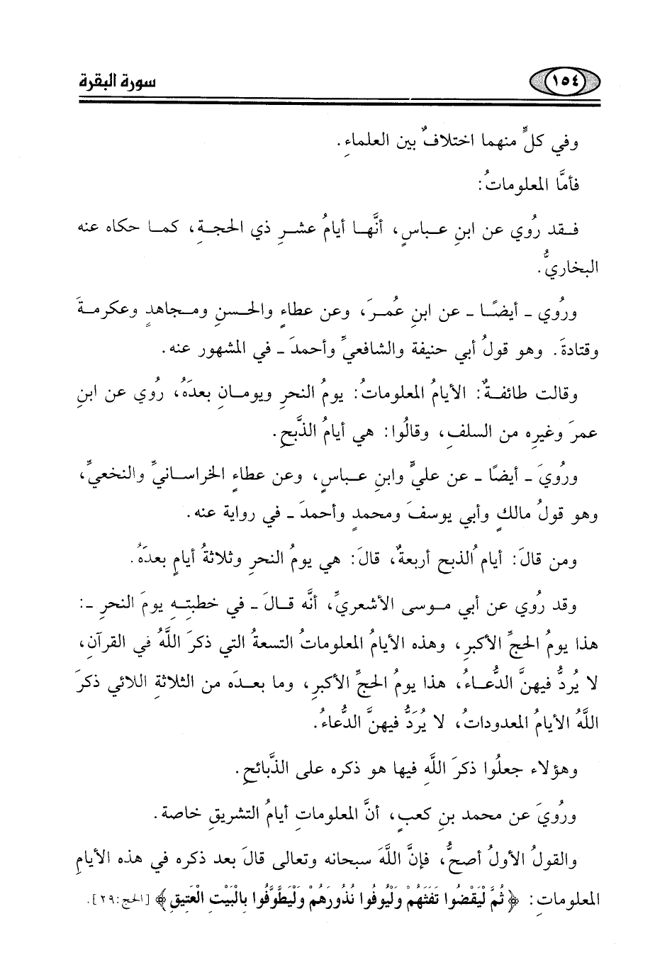 المعلوماتِ: (ثُمَّ لْيَقْضُوا تَفَثَهُمْ وَلْيُوفُوا نُذُورَهُمْ وَلْيَطَّوَّفُوا بِالْبَيْتِ الْعَتِيقِ (29) .