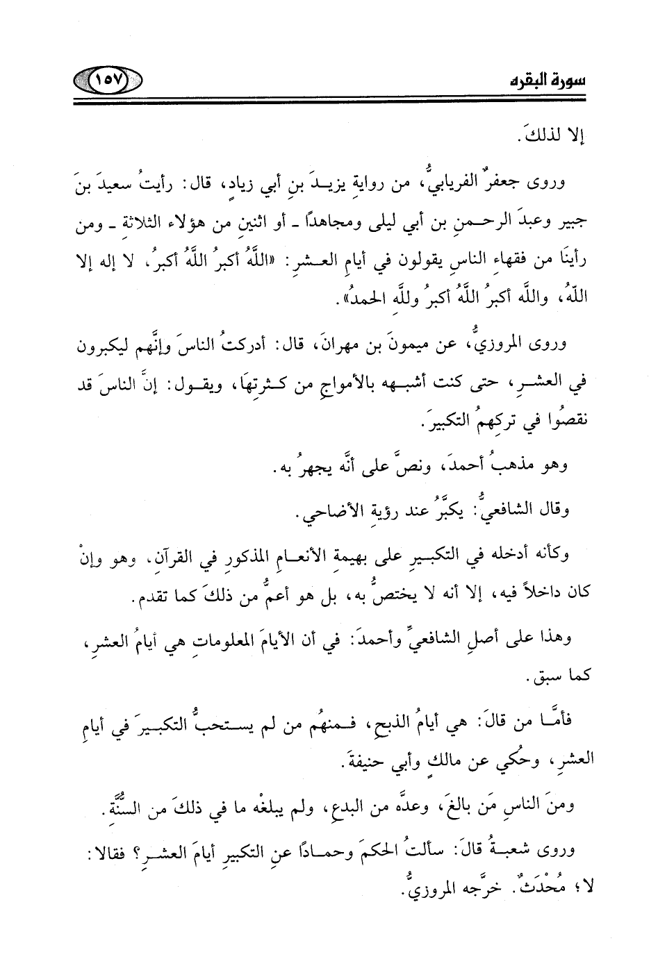 وروى شعبةُ قالَ: سألتُ الحكمَ وحمادًا عنِ التكبيرِ أيامَ العشرِ؛ فقالا: