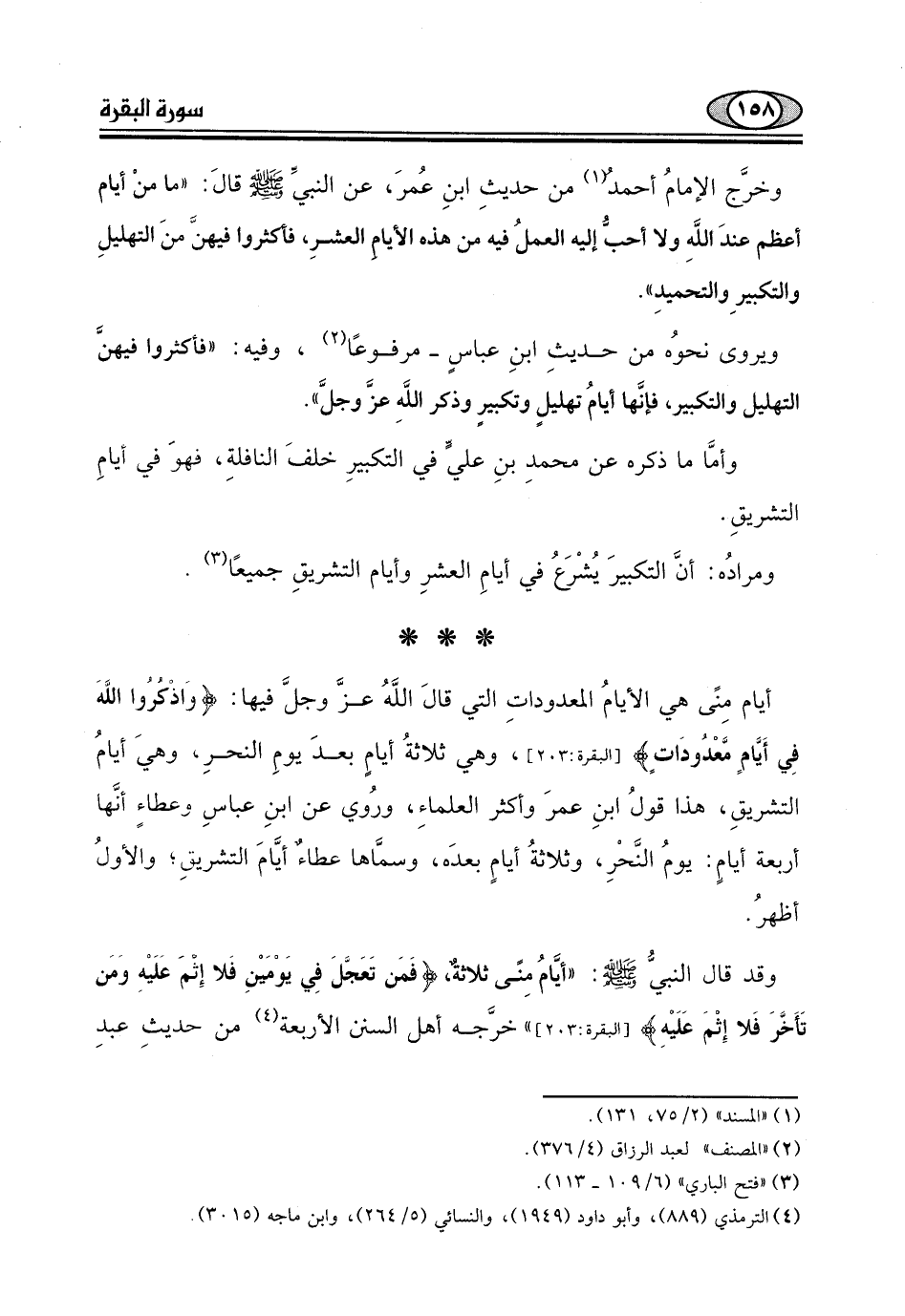 فِي أَيَّامٍ معْدُودَاتٍ) ، وهي ثلاثةُ أيام بعدَ يومِ النحرِ، وهيَ أيامُ