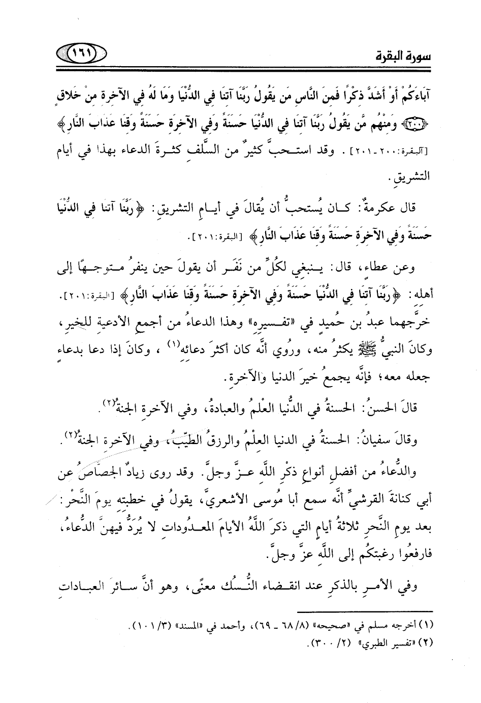 قال عكرمة: كان يُستحبُّ أن يُقالَ في أيامِ التشريقِ: (رَبَّنَا آتِنَا فِي الدُّنْيَا حَسَنَةً وَفِي الْآخِرَةِ حَسَنَةً وَقِنَا عَذَابَ النَّارِ) .