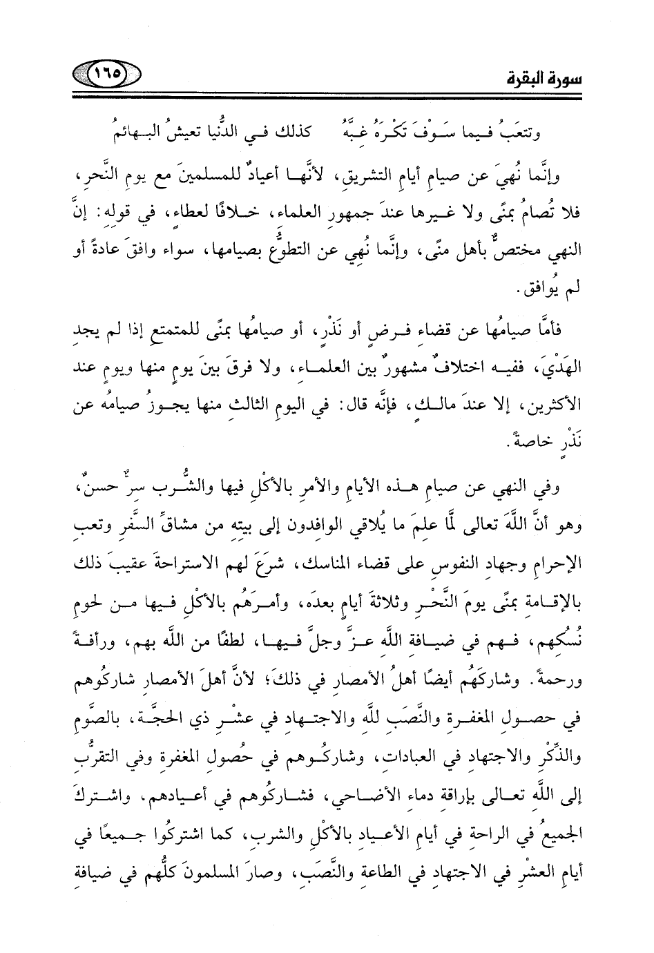 وإنَّما نُهيَ عن صيامِ أيامِ التشريقِ، لأنَّها أعيادٌ للمسلمينَ مع يومِ النَّحرِ.
