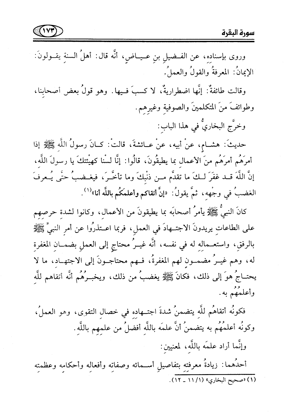 كانَ النبيُّ - صلى الله عليه وسلم - يأمرُ أصحابَه بما يطيقونَ من الأعمالِ، وكانوا لشدةِ حرصِهِم على الطاعاتِ يريدونَ الاجتهادَ في العملِ، فربما اعتذرُوا عن أمرِ النبيِّ - صلى الله عليه وسلم - بالرفقِ، واستعمالِهِ له في نفسه، أنَّه غيرُ محتاج إلى العملِ بضمانِ المغفرةِ له، وهم غيرُ مضمونٍ لهم المغفرةُ، فهم محتاجونَ إلى الاجتهادِ، ما لا يحتاجُ هوَ إلى ذلك، فكانَ - صلى الله عليه وسلم - يغضبُ من ذلك، ويخبرُهُم أنَّه أتقاهم للَّهِ