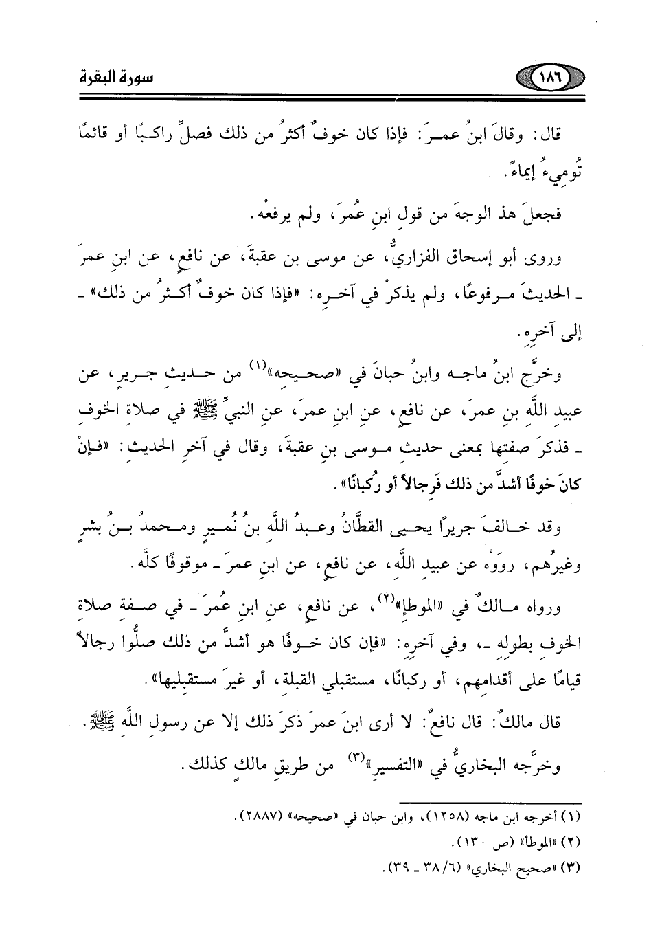قال: وقالَ ابنُ عمرَ: فإذا كان خوف أكثرُ من ذلك فصلِّ راكبًا أو قائمًا