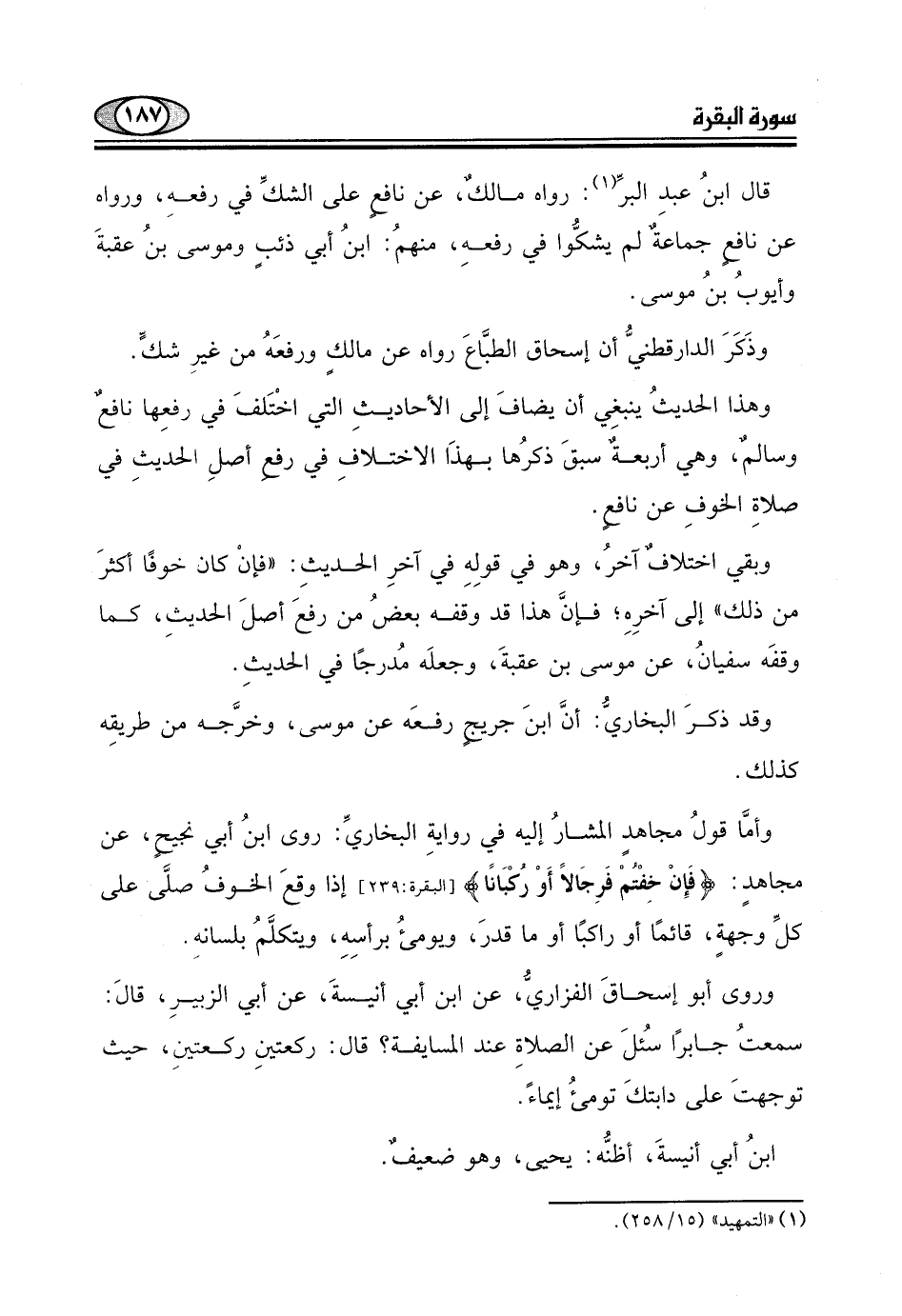 وهذا الحديثُ ينبغِي أن يضافَ إلى الأحاديثِ التي اخْتَلفَ في رفعِها نافعٌ
