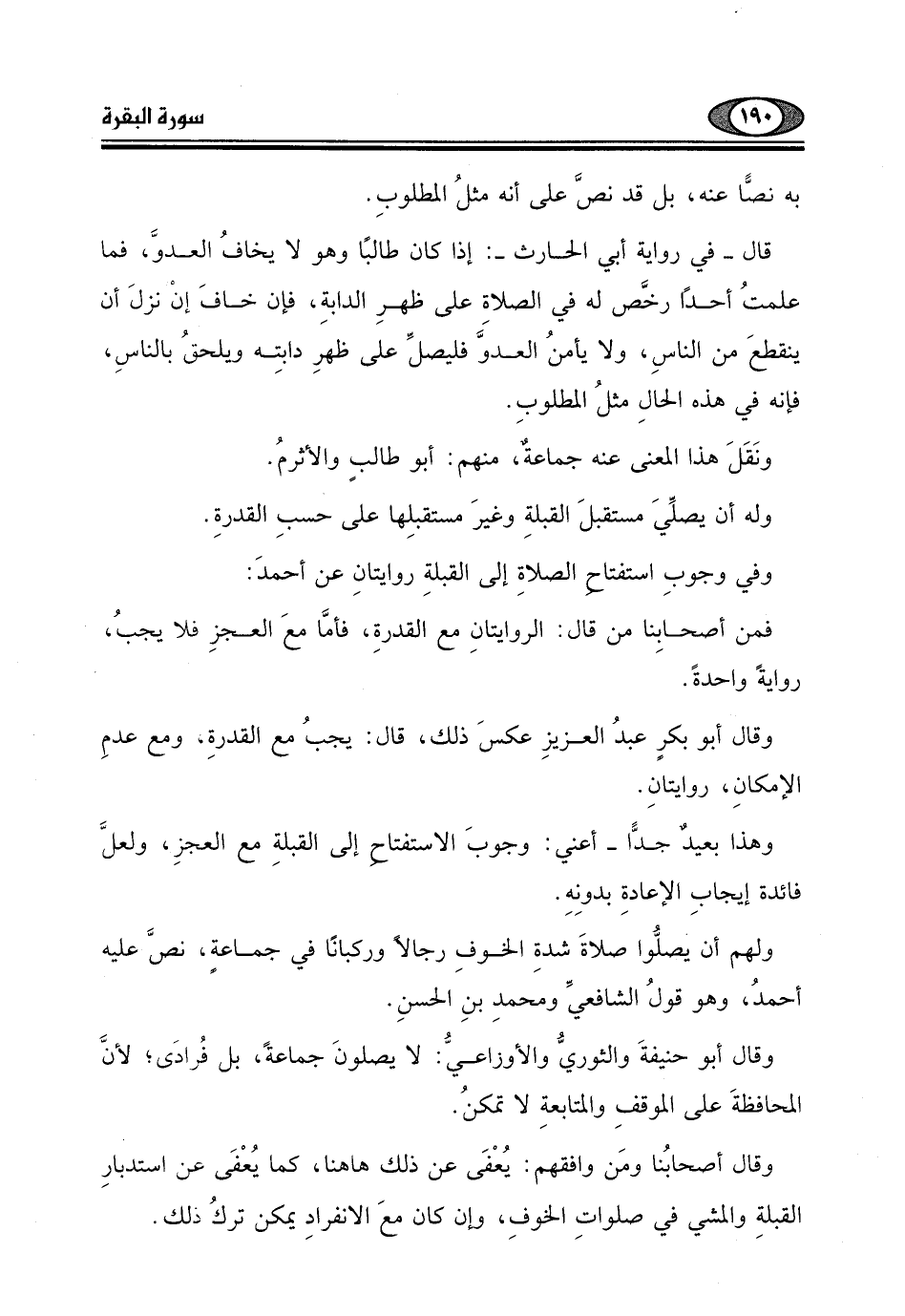 القبلةِ والمشي في صلواتِ الخوفِ، وإن كان معَ الانفرادِ يمكن تركُ ذلك.