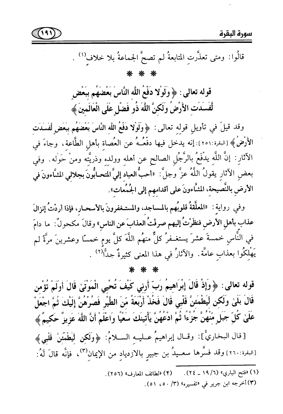 قوله تعالى: (وَلَوْلَا دَفْعُ اللَّهِ النَّاسَ بَعْضَهُمْ بِبَعْضٍ لَفَسَدَتِ الْأَرْضُ وَلَكِنَّ اللَّهَ ذُو فَضْلٍ عَلَى الْعَالَمِينَ (251)