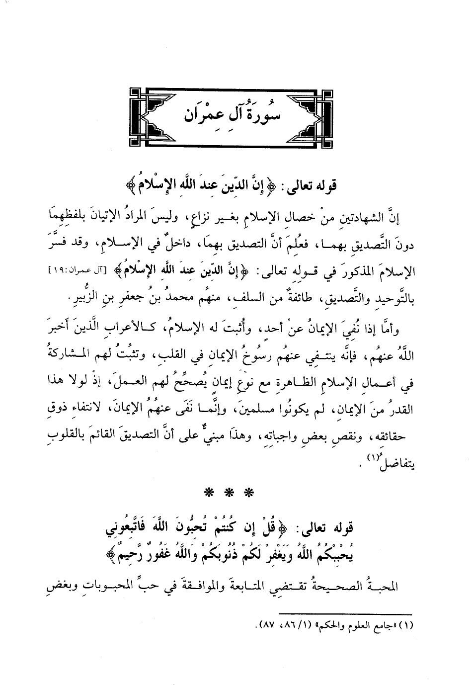 الإسلامَ المذكورَ في قولِهِ تعالى: (إِنَّ الدِّينَ عِندَ اللهِ الإِسْلامُ) .