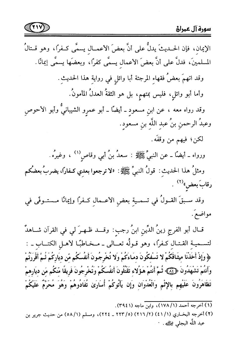 المسلمينَ، فدلَّ على أنَّ بعضَ الأعمالِ يسمَّى كفرًا، وبعضَها يسمَّى إيمانًا.