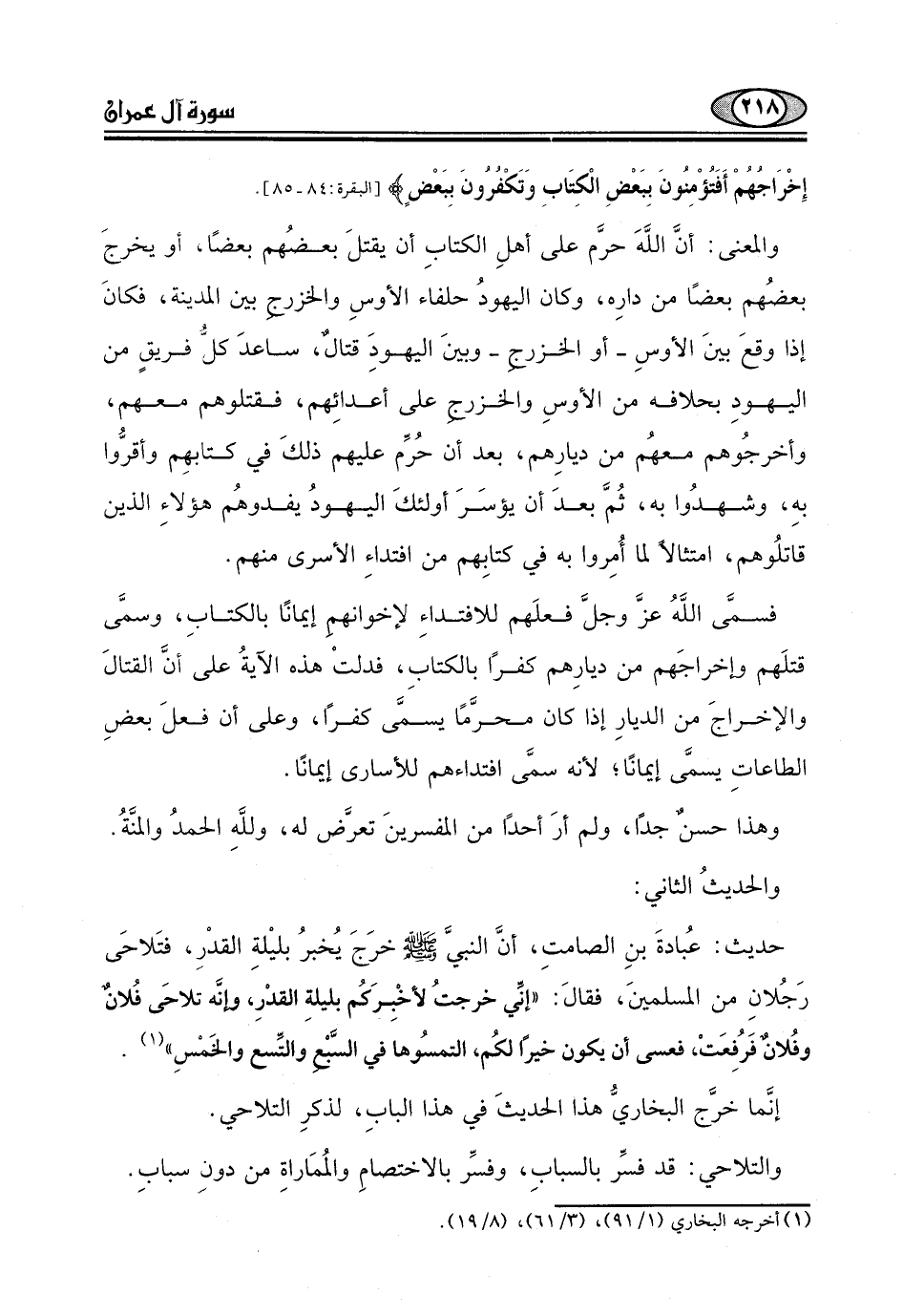 قتلَهم وإخراجَهم من ديارِهم كفرًا بالكتابِ، فدلتْ هذه الآية ُ على أنَّ القتالَ والإخراجَ من الديارِ إذا كان محرَّمًا يسمَّى كفرًا، وعلى أن فعلَ بعضِ