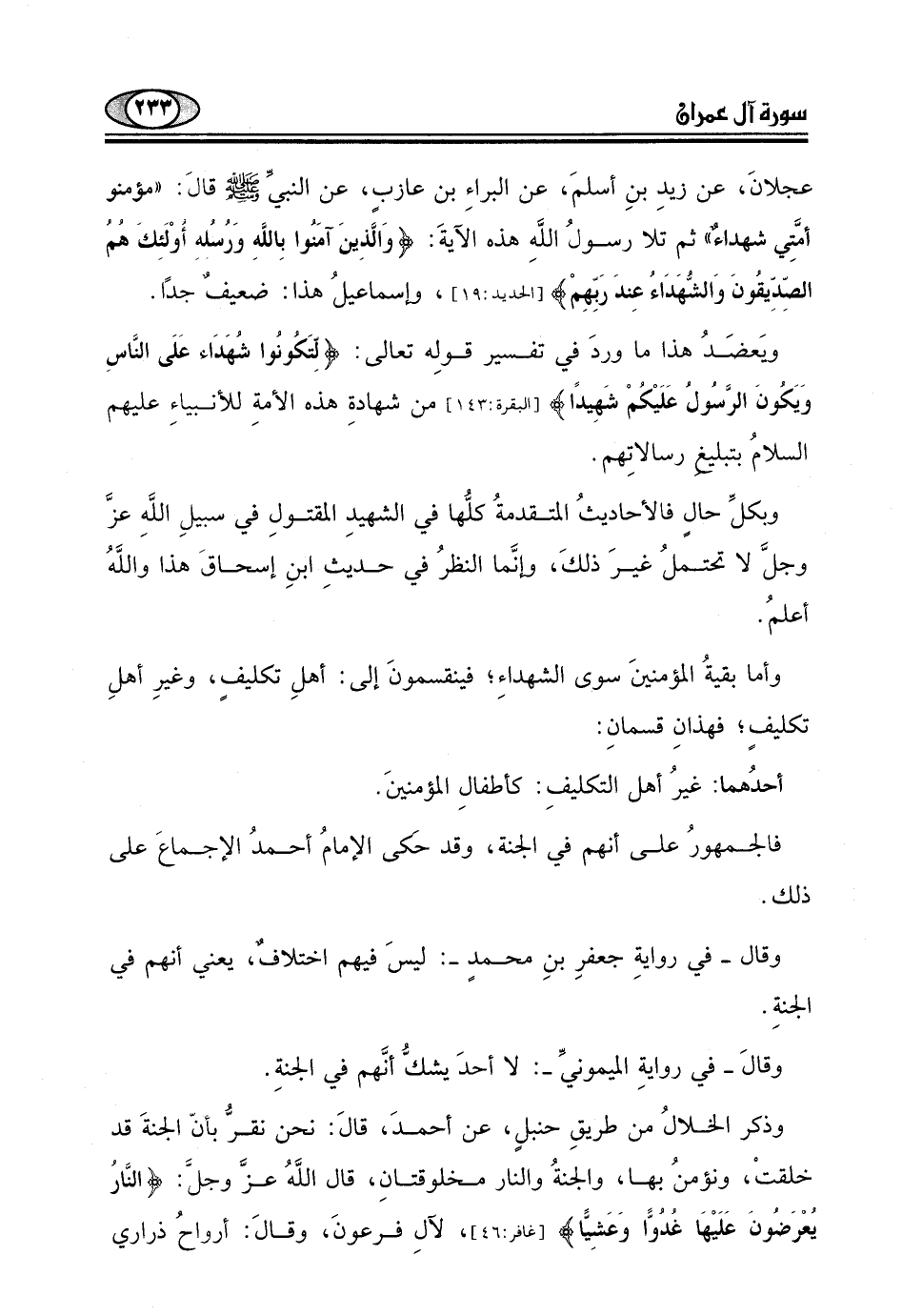 وأما بقيةُ المؤمنينَ سوى الشهداءِ؛ فينقسمونَ إلى: أهلِ تكليف، وغيرِ أهلِ