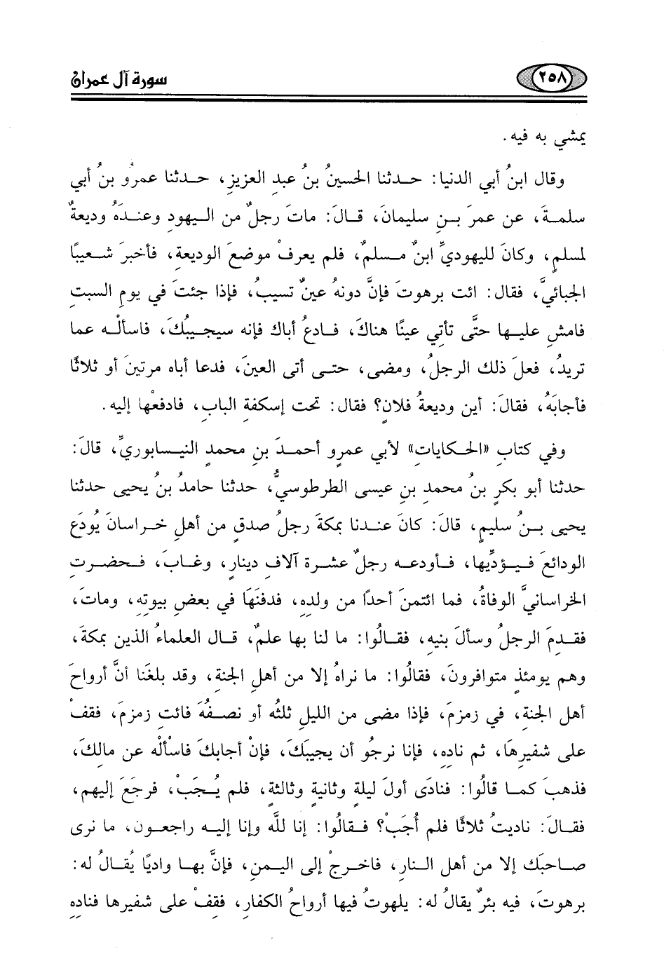 وقال ابنُ أبي الدنيا: حدثنا الحسينُ بنُ عبدِ العزيزِ، حدثنا عمرو بنُ أبي