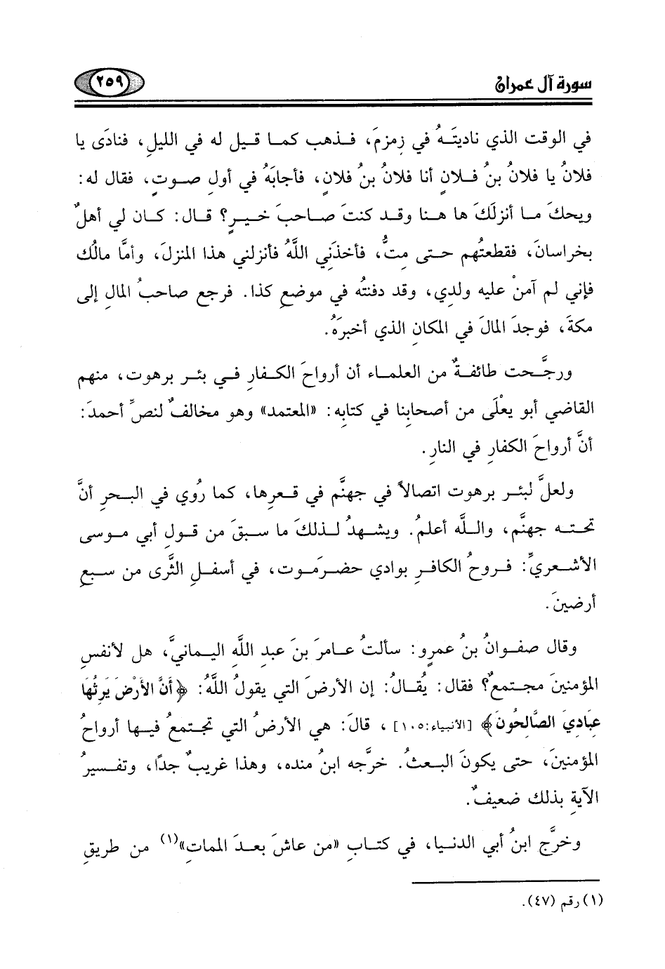 ويشهدُ لذلكَ ما سبقَ من قولِ أبي موسى الأشعريِّ: فروحُ الكافرِ بوادي حضرَموت، في أسفلِ الثرى من سبع أرضينَ.