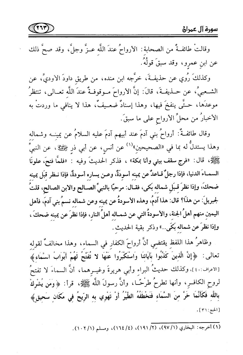 تعالى: (إِنَّ الَّذِينَ كذَّبُوا بِآيَاتِنَا وَاسْتَكْبَرُوا عَنْهَا لا تُفَتَّحُ لَهُمْ أَبْوَاب السَّمَاءِ) ، وكذلك حديثُ البراءِ وأبي هريرةَ وغيرِهما، أنَّ السماءَ لا تفتحُ