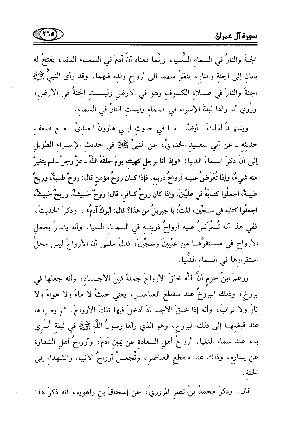 الأرواح في مستقرِّها من علِّيينَ وسجًّينَ، فدلَّ على أن الأرواحَ ليس محل