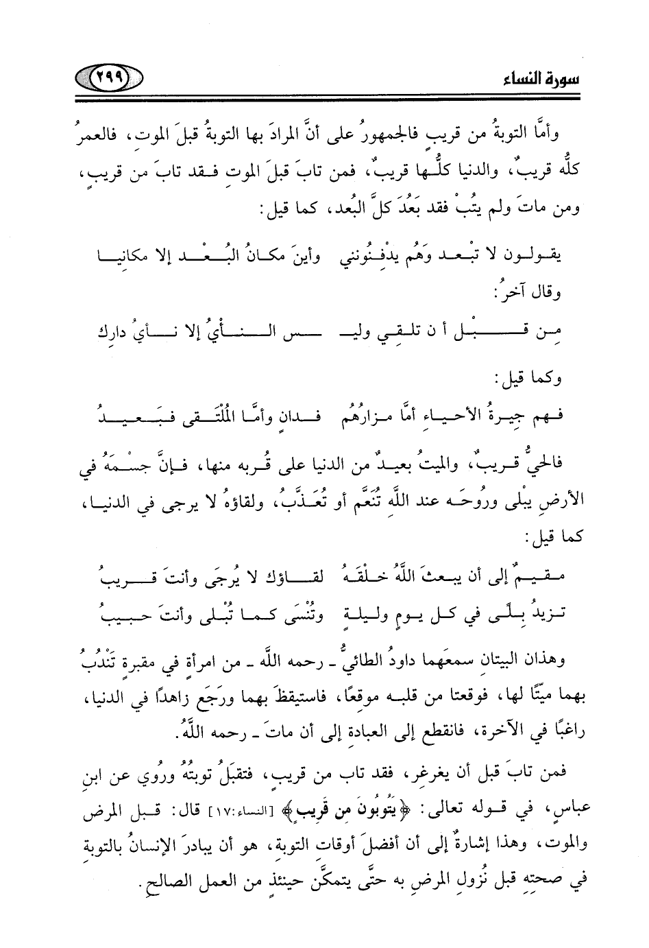 مقيمٌ إلى أن يبعثَ اللَّهُ خلْقَهُ. . . لقاؤك لا يُرجَى وأنتَ قريبُ