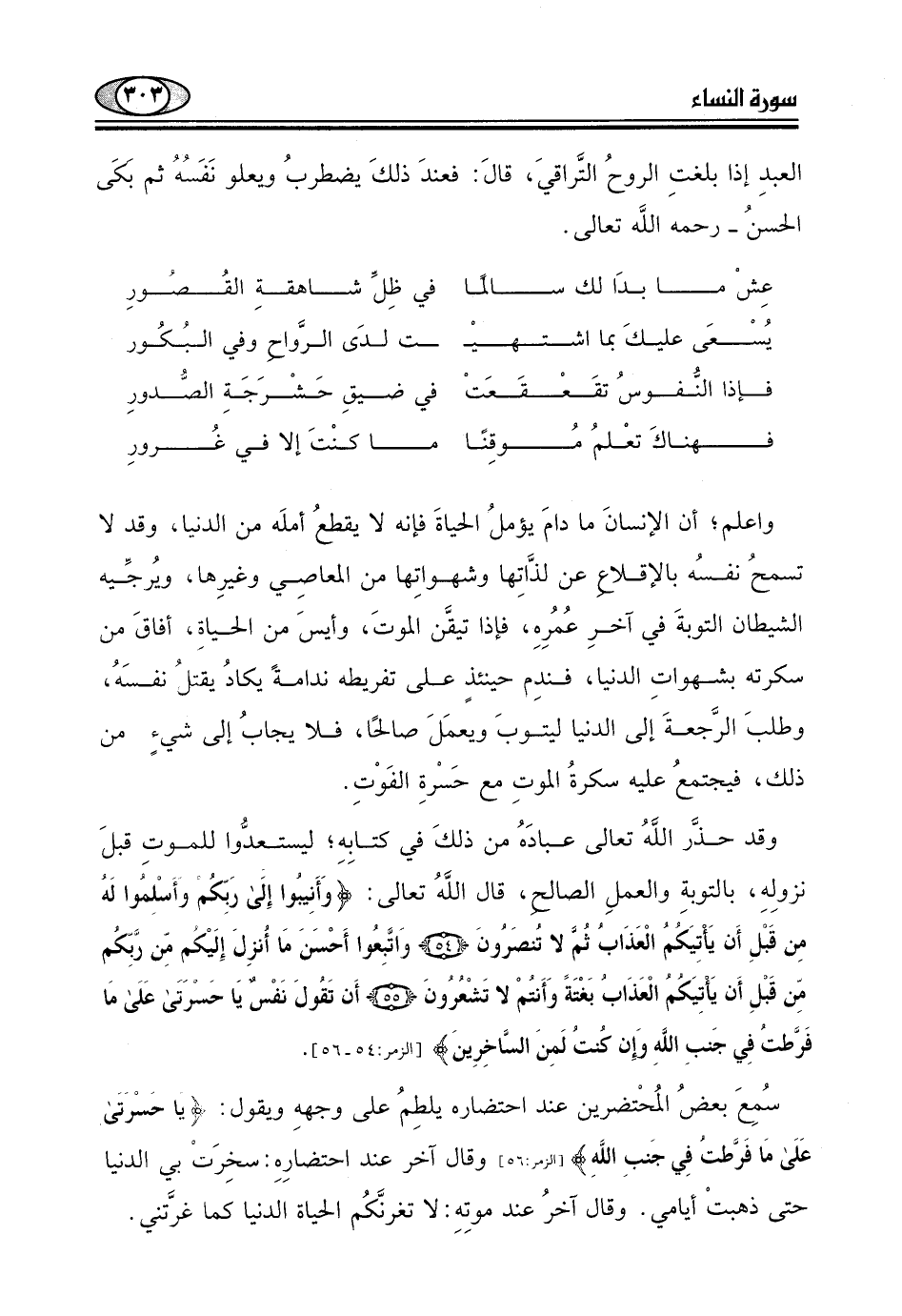 سُمِعَ بعضُ المُحْتضرين عند احتضاره يلطِمُ على وجههِ ويقول:، (يا حَسْرَتَى
