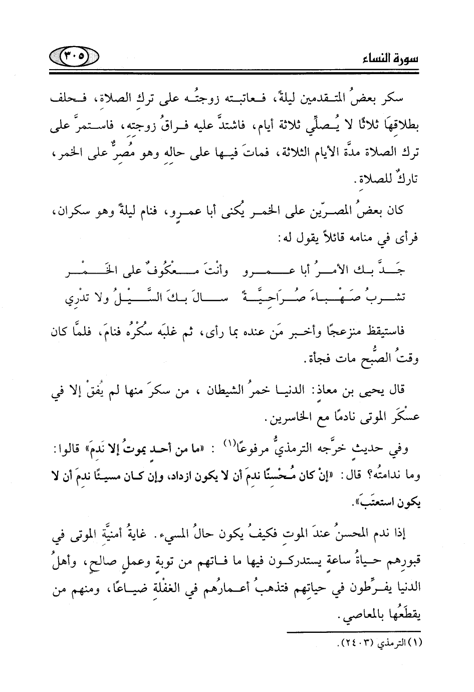 كان بعضُ المصرّين على الخمر يُكنى أبا عمرو، فنام ليلةً وهو سكران.