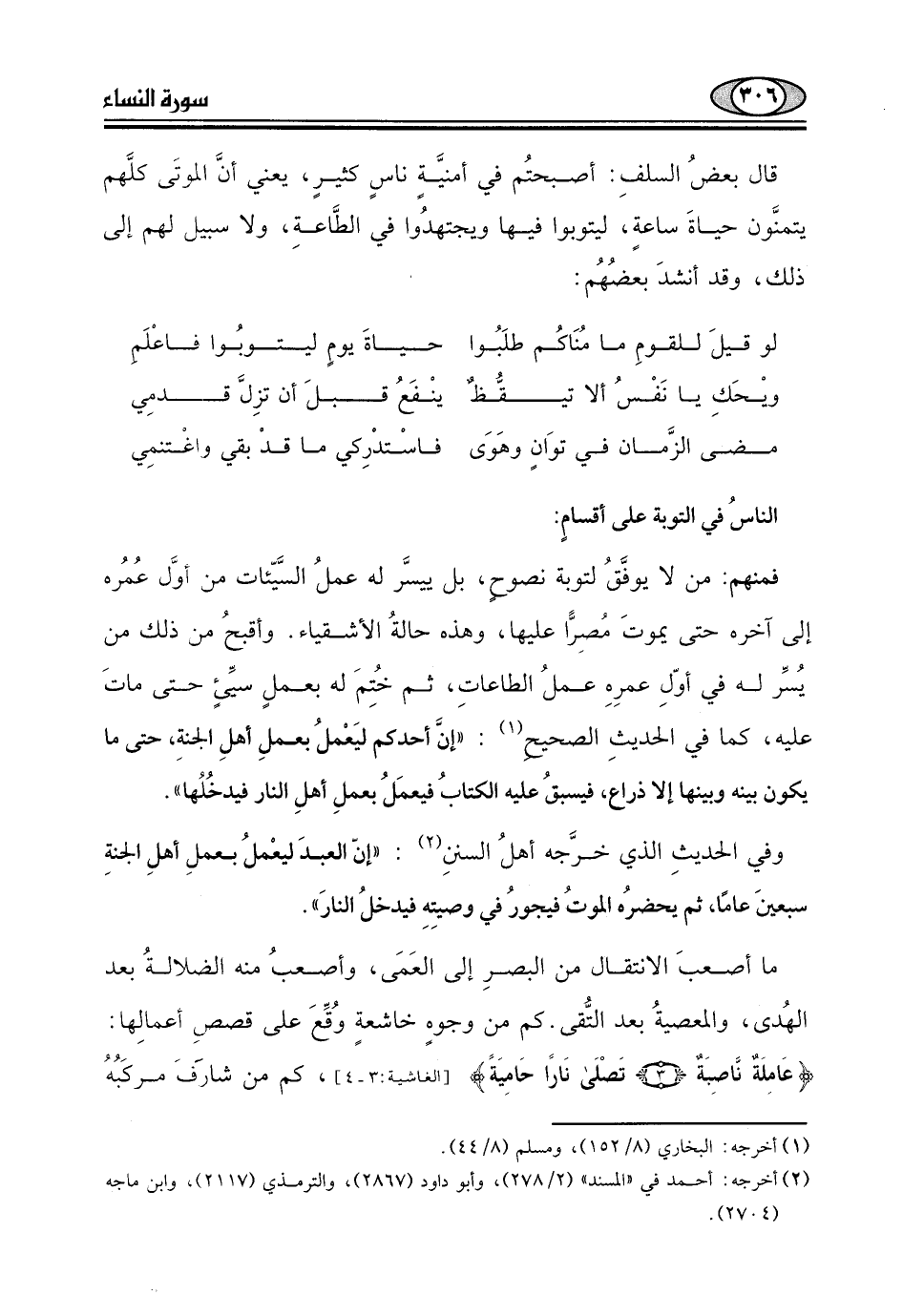 ويْحَكِ يا نَفْسُ ألا تيقُّظٌ. . . ينْفَعُ قبلَ أن تزِل قدمِي