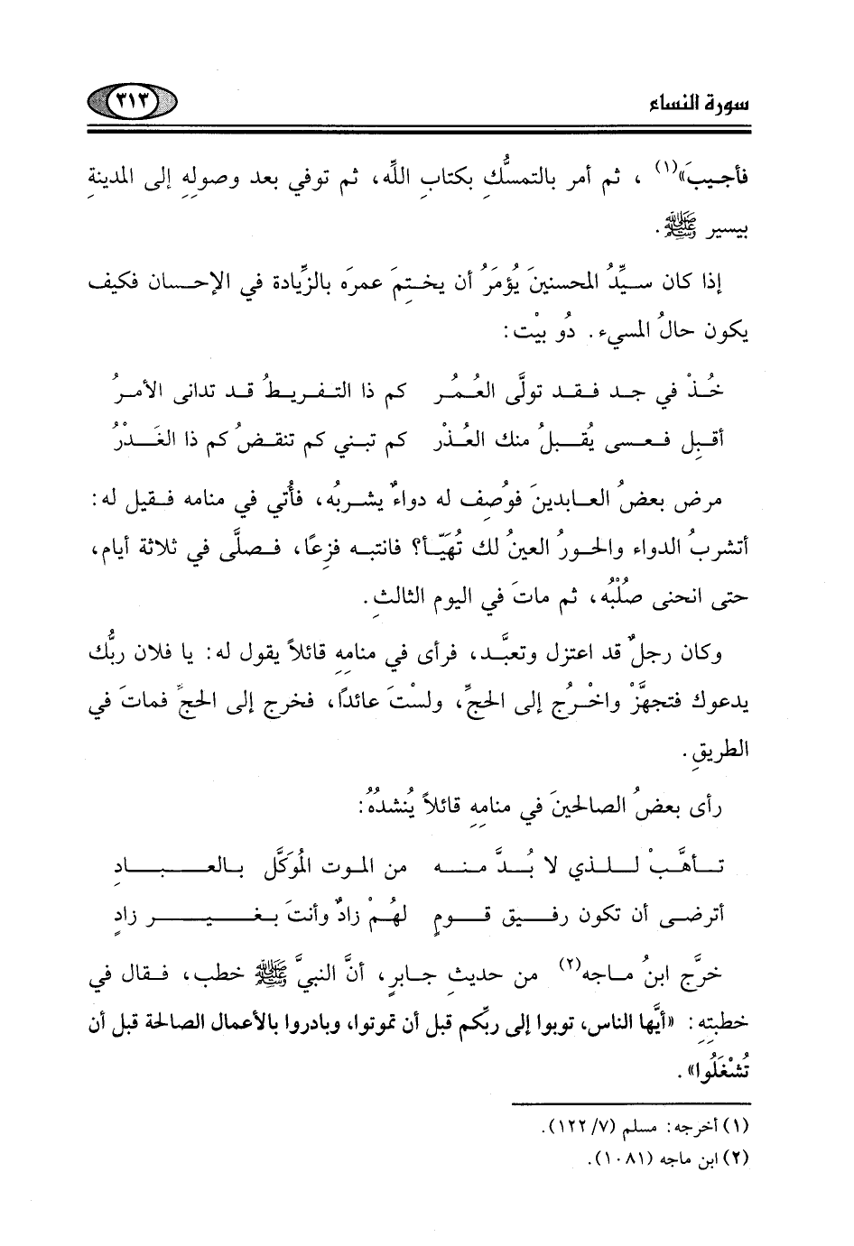 خرَّج ابنُ ماجةَ من حديثِ جابرٍ، أنَّ النبيَّ - صلى الله عليه وسلم - خطب، فقال في خطبتِهِ: "أيَّها الناس، توبوا إلى ربّكم قبل أن تموتوا، وبادروا بالأعمال الصالحة قبل أن تُشْغَلُوا".