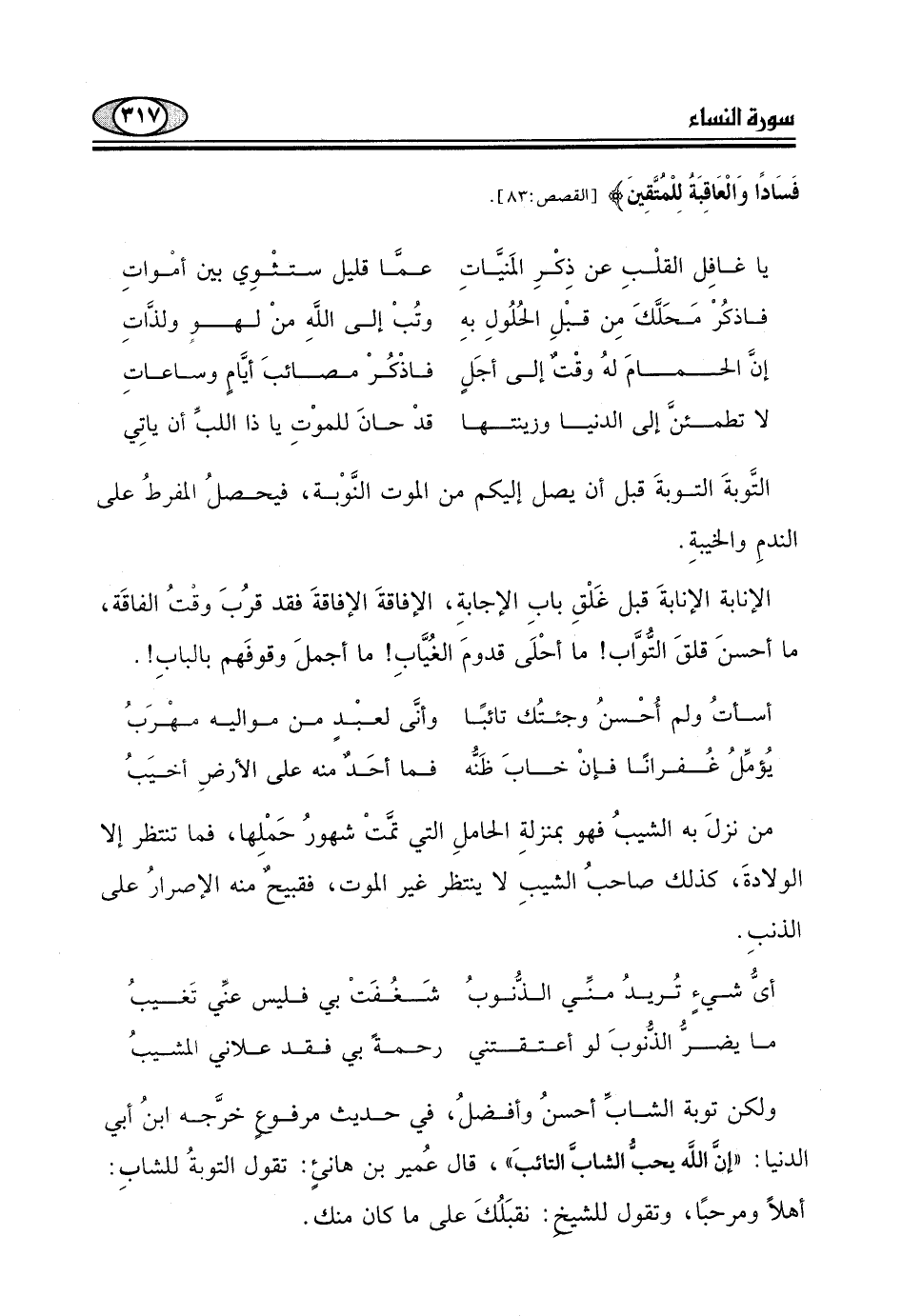"إنَ اللَّه يحبّ الشابَّ التائبَ ".